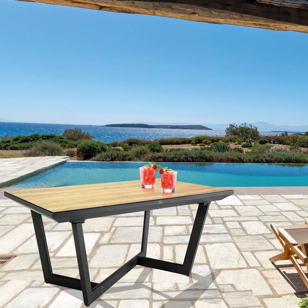 Deze tafel is niet alleen praktisch met zijn uitschuifbaarheid, maar hij is ook esthetisch, ideaal voor elke moderne omgeving die functionaliteit en stijl wil combineren. Perfect voor al fresco dineren, familiebijeenkomsten of gewoon genieten van een rustige middag in de buitenlucht, deze tafel is de ideale keuze voor diegenen die elegantie en veelzijdigheid zoeken in hun tuinmeubilair.