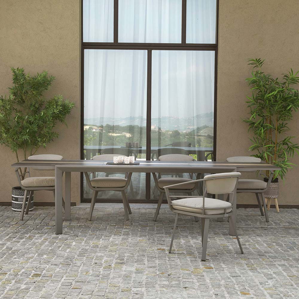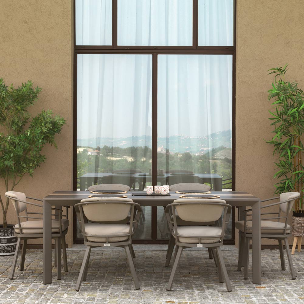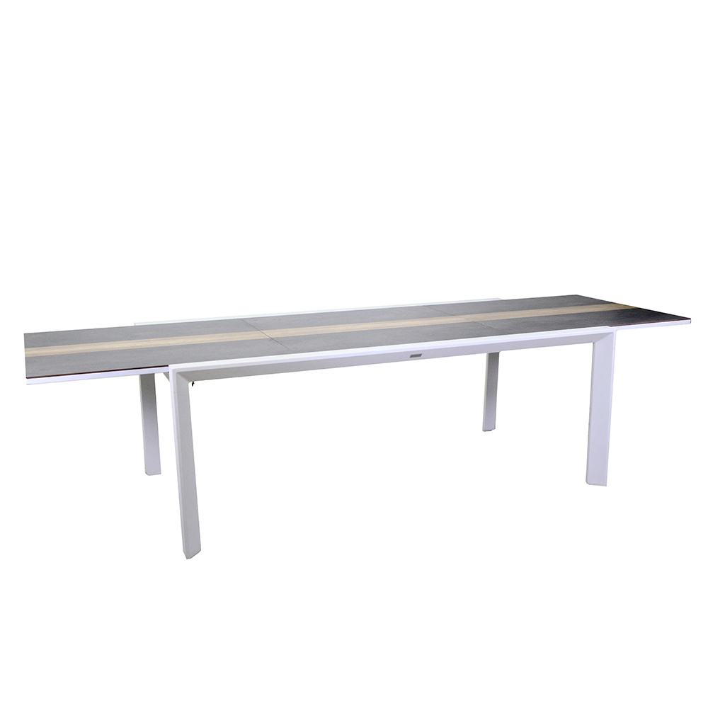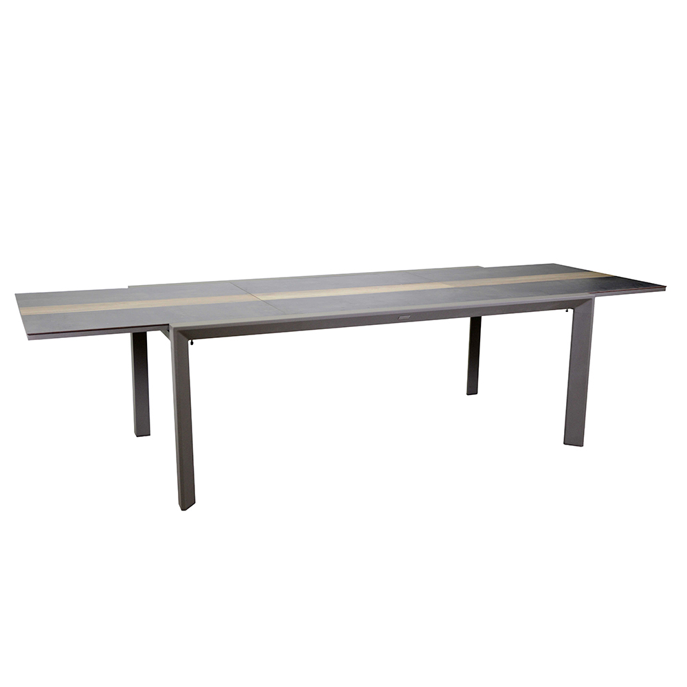 Met een centraal verschuifbare opening , biedt deze tafel unieke flexibiliteit, waardoor je hem gemakkelijk kunt verlengen wanneer dat nodig is, waardoor hij perfect is voor het ontvangen van vrienden en familie. Het HPL oppervlak is ook beroemd weerbestendig en gemakkelijk schoon te maken, waardoor het een duurzame en gemakkelijk te onderhouden investering is.