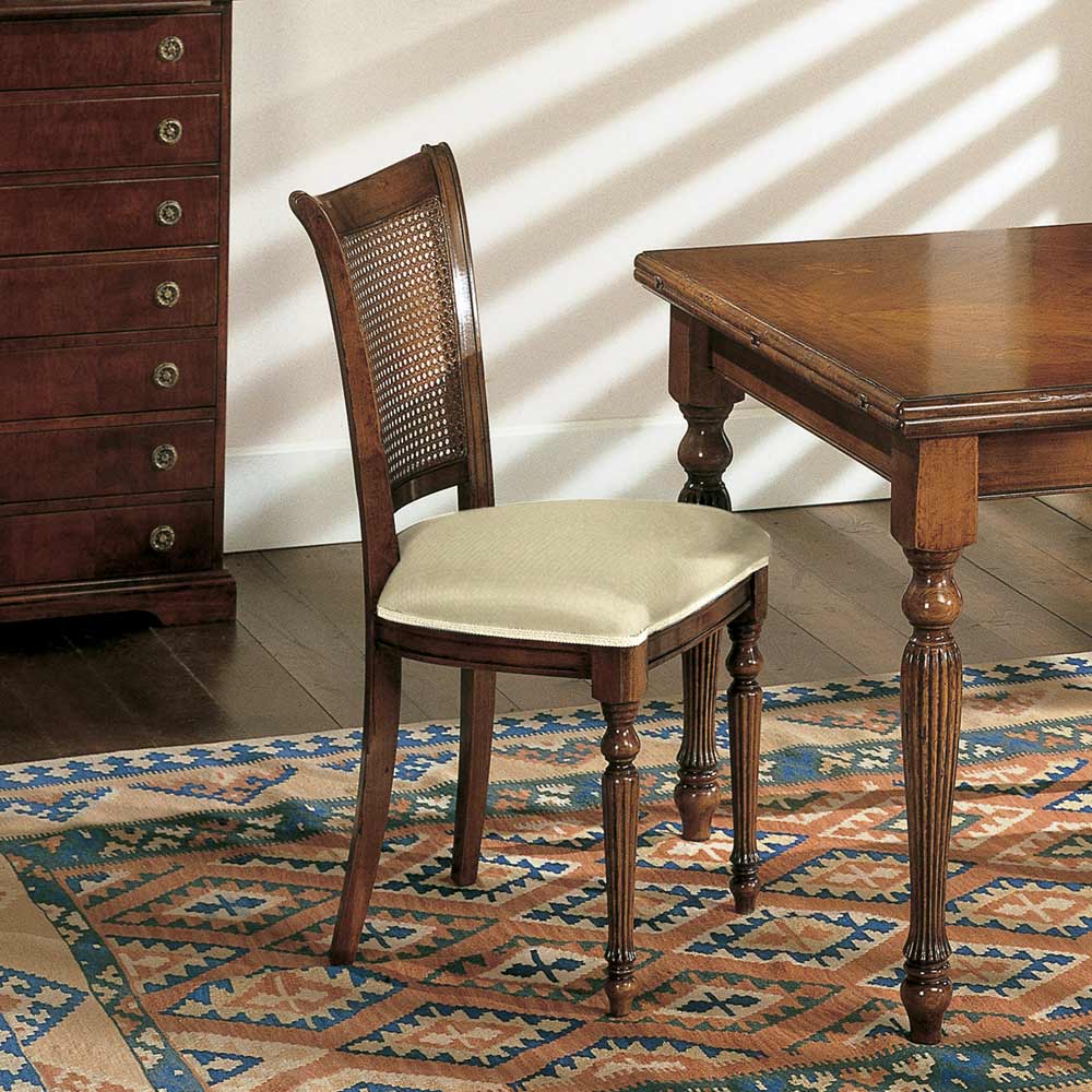 - Stoel: structuur van gepatineerd notenhout - zitting in juma stof
