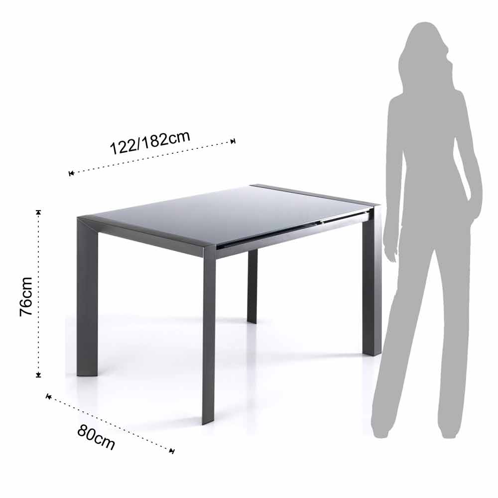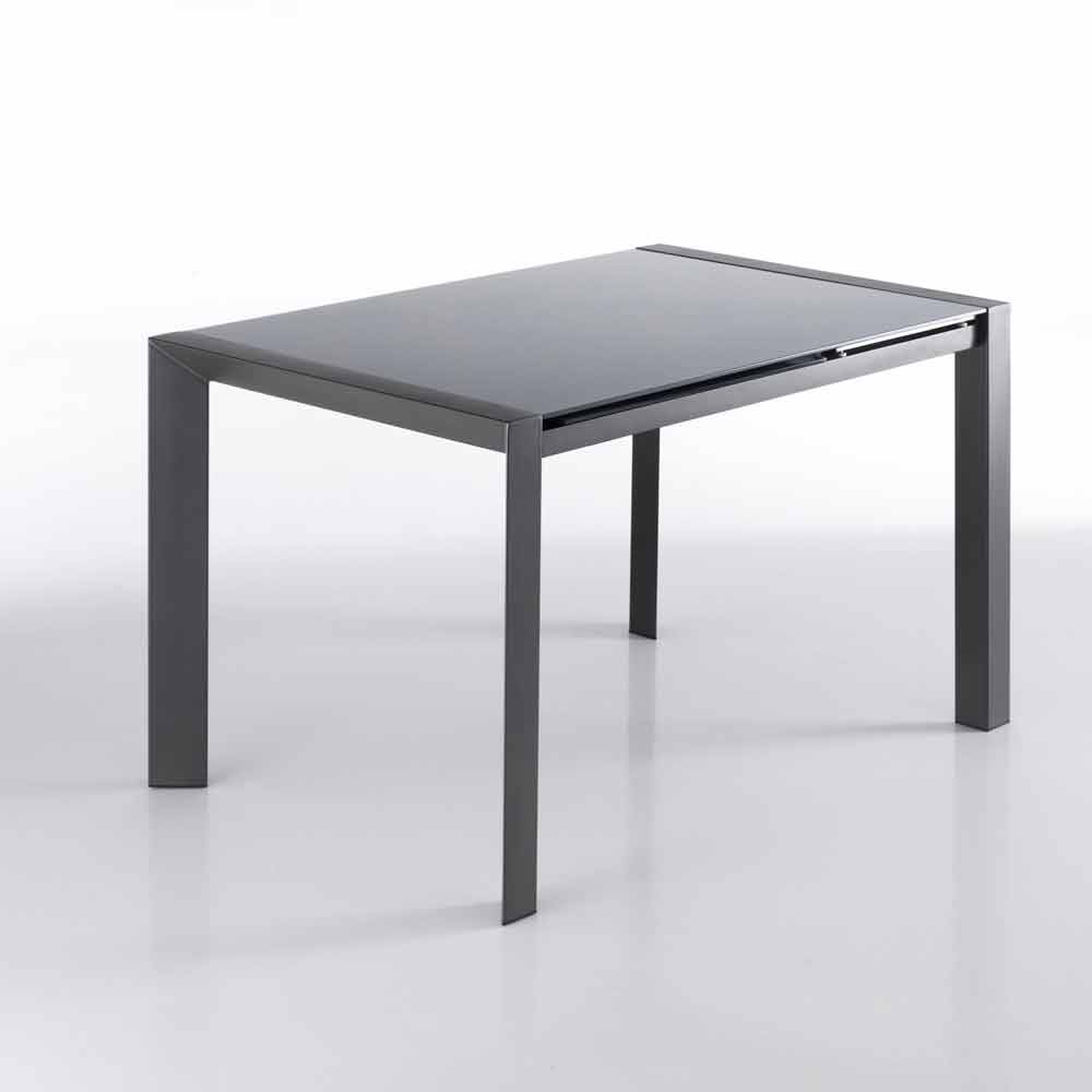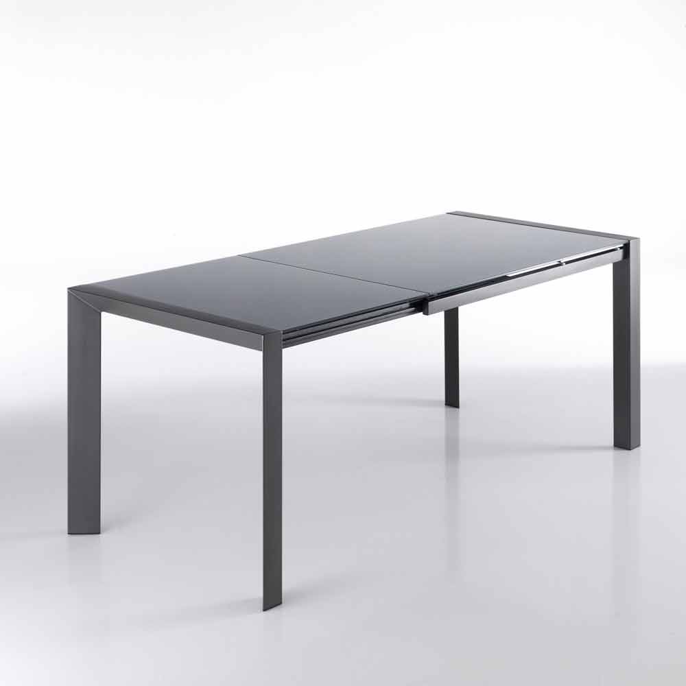 Uitschuifbare tafel gehard glas grijs gelakt metaal en Zeno