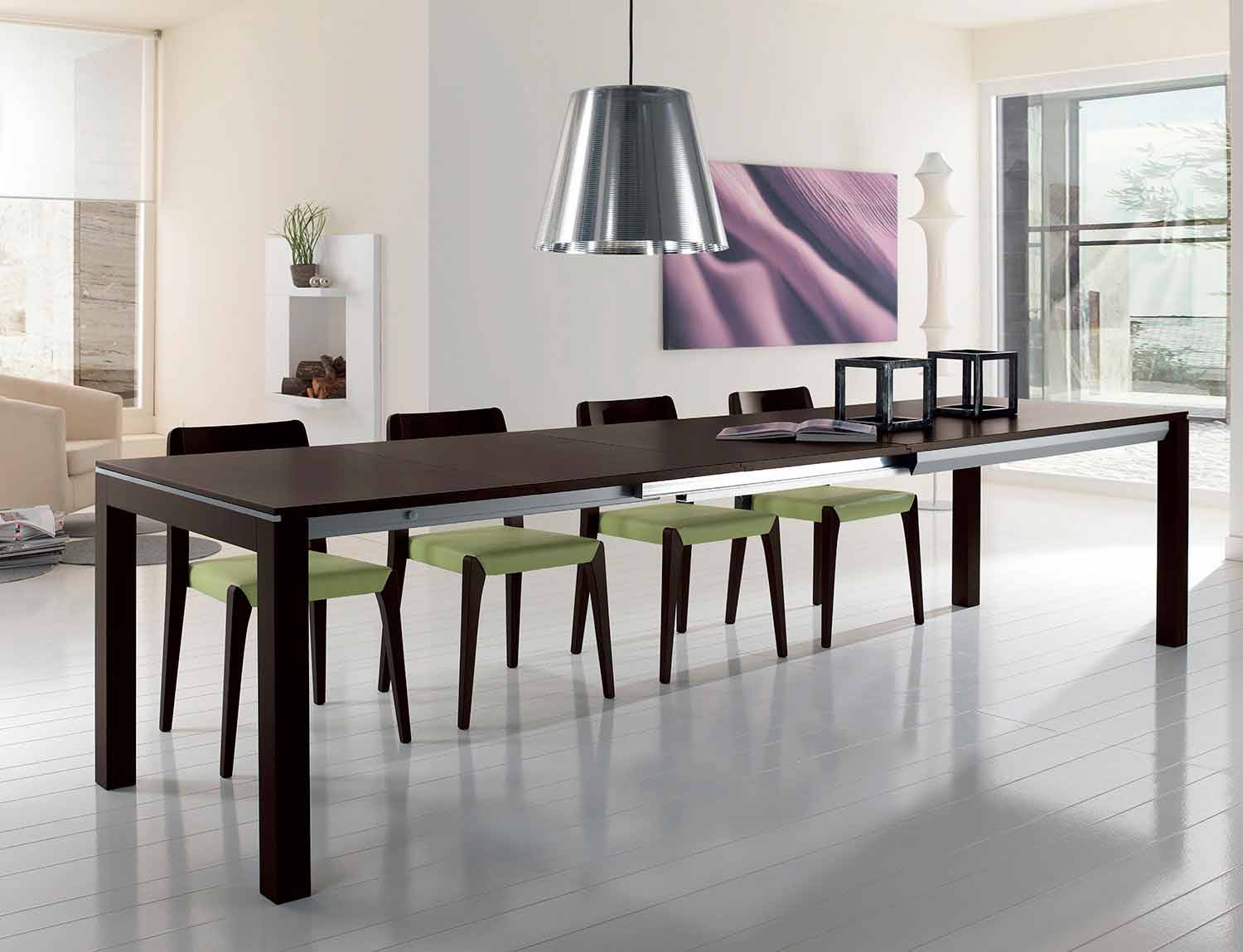 Het is uitbreidbaar door zijwaarts te schuiven door de extractie van 3 planken van elk 60 cm die zich in het frame bevinden.