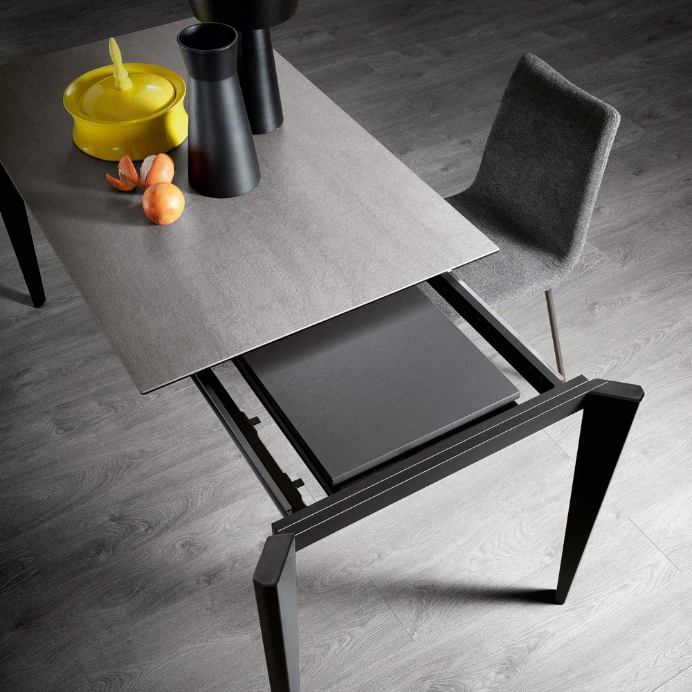 Made in Italy komt tot uiting in elk detail, van de materiaalkeuze tot de zorg waarmee het uitschuifmechanisme is gemaakt, waardoor elke maaltijd een ervaring van kwaliteit en comfort is.