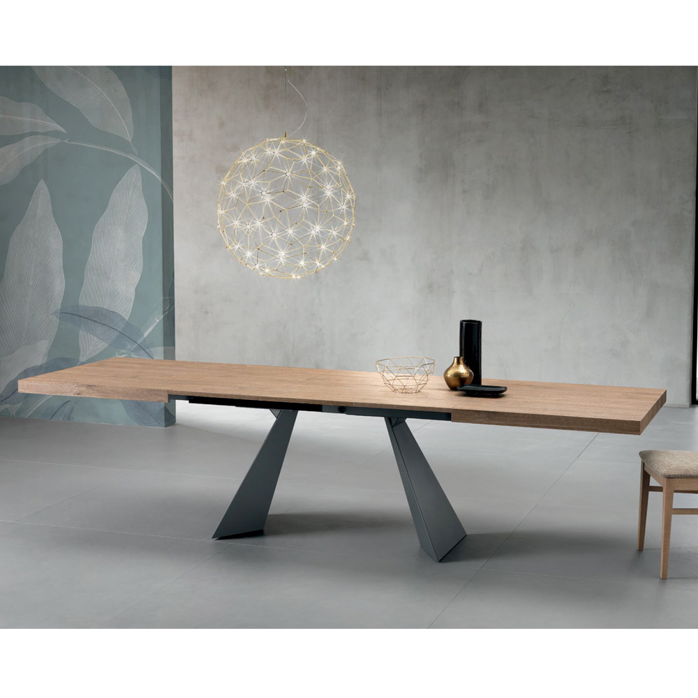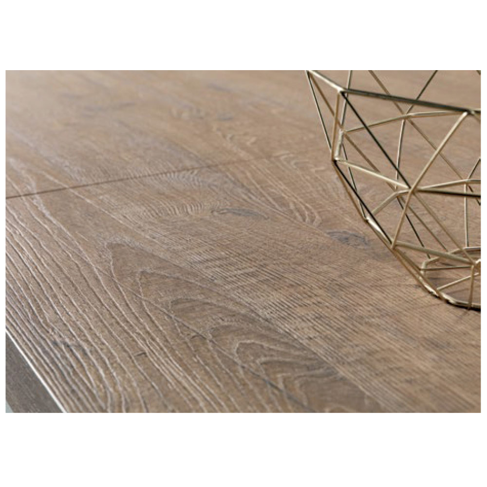 Deze tafel combineert architectonische creativiteit en eigentijdse verfijning en transformeert elke kamer in een stijlvolle ruimte . Het laminaatblad met eikenhouten plankafwerking laat de schoonheid van de natuurlijke nerf tot uiting komen.