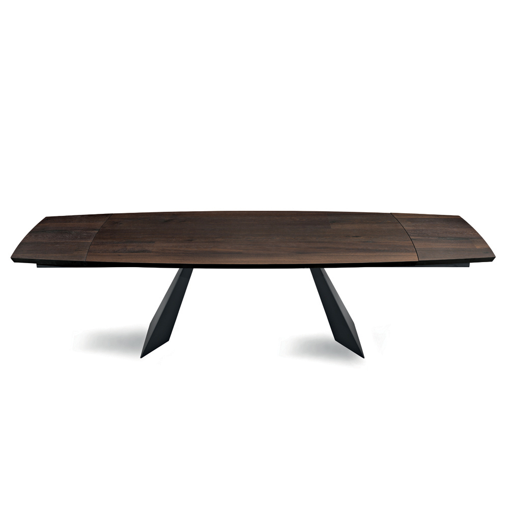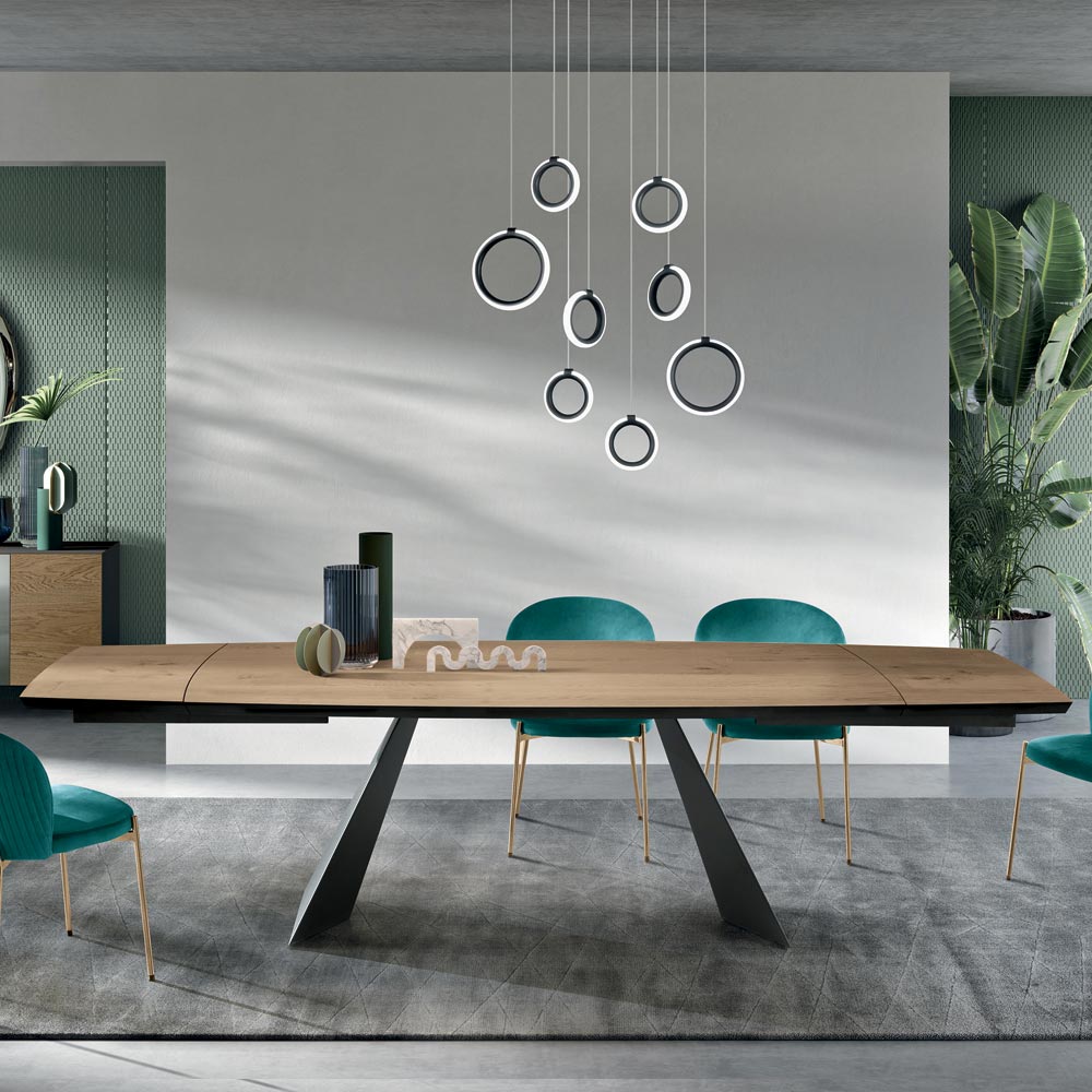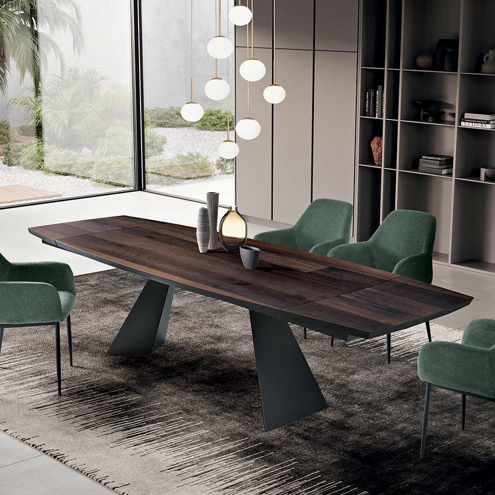 De tafel is verkrijgbaar in een uitschuifbare versie , ideaal om aan verschillende dagelijkse behoeften aan te passen en om gasten te ontvangen tijdens gezellige momenten. De verlengstukken zijn los en niet in het tafelblad geïntegreerd ; ze kunnen naar behoefte worden ingeschoven met behulp van de uittrekbare geleiders.