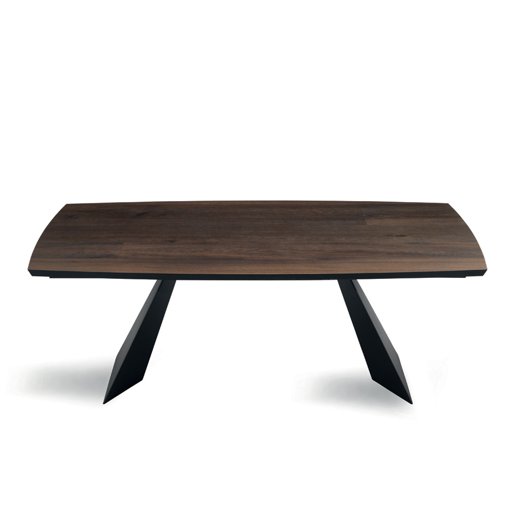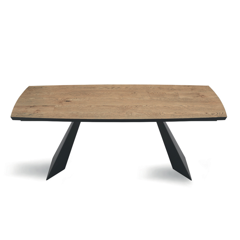 De combinatie van metaal en hout zorgt voor een elegant en eigentijds contrast, waardoor de tafel geschikt is voor diverse interieurstijlen. Het tafelblad is verkrijgbaar in onbewerkt eikenhout en thermisch behandeld eikenhout , afwerkingen die de natuurlijke schoonheid van het hout benadrukken en naadloos integreren in moderne omgevingen.