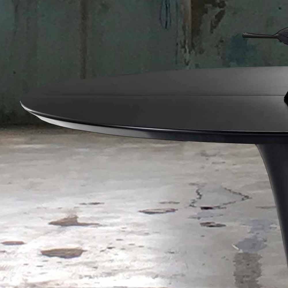mat zwart gelakt kwartsblad (materiaal met hoge weerstand), met een dikte van 30 mm, verrijkt met een wijd uitlopende rand.