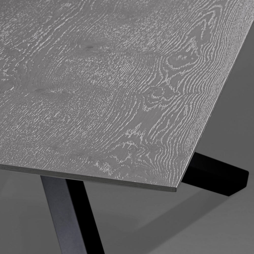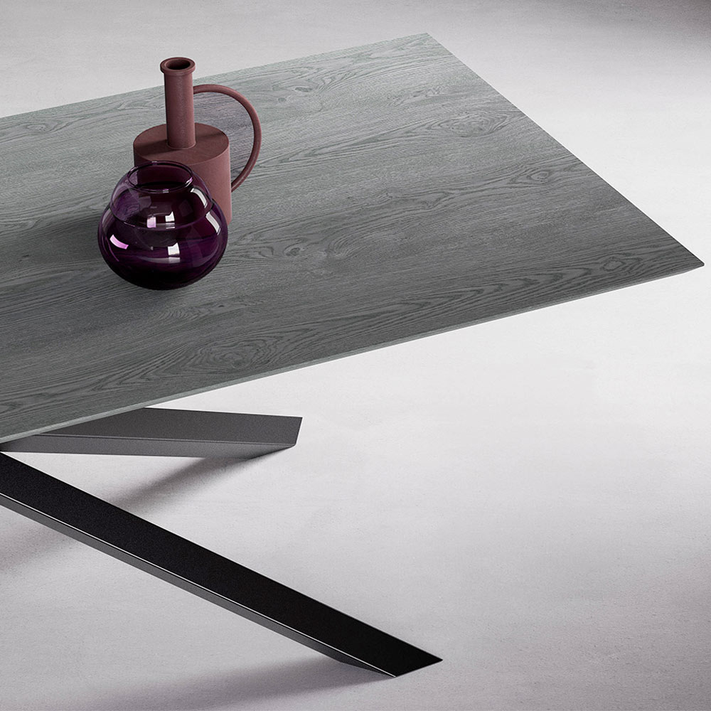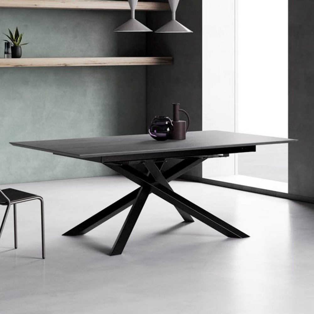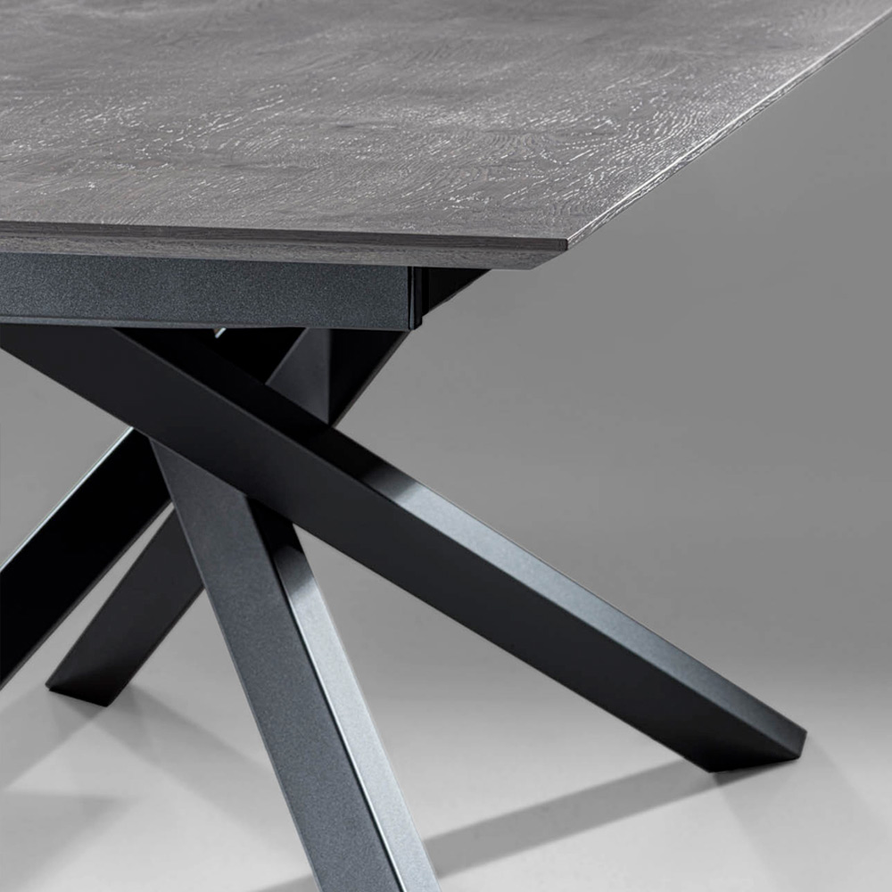 Uitschuifbare tafel met grijs eiken blad en grafietpoten Made in Italy.