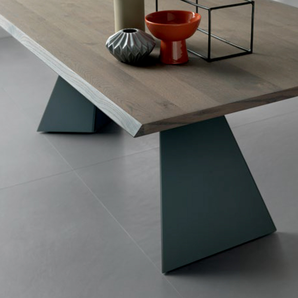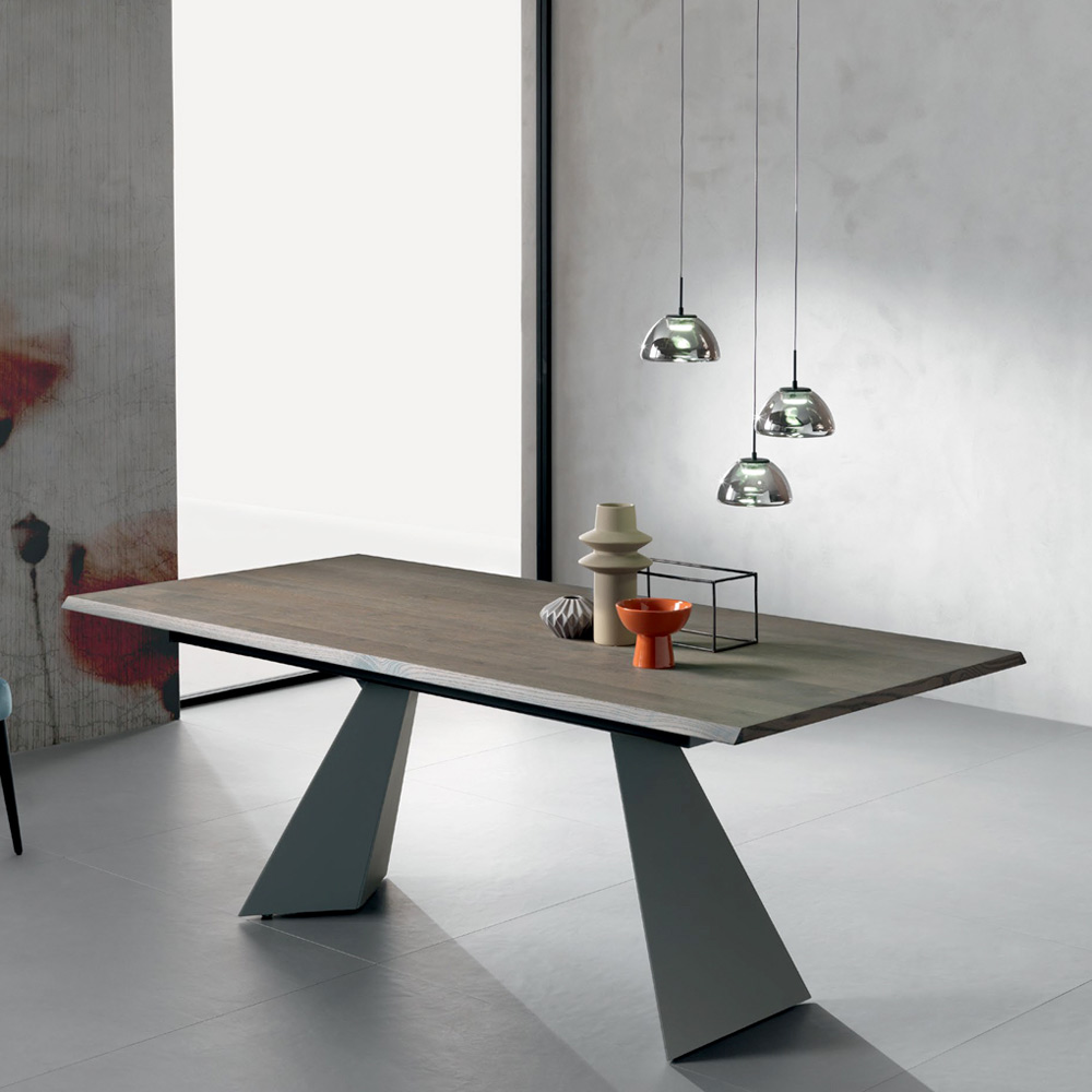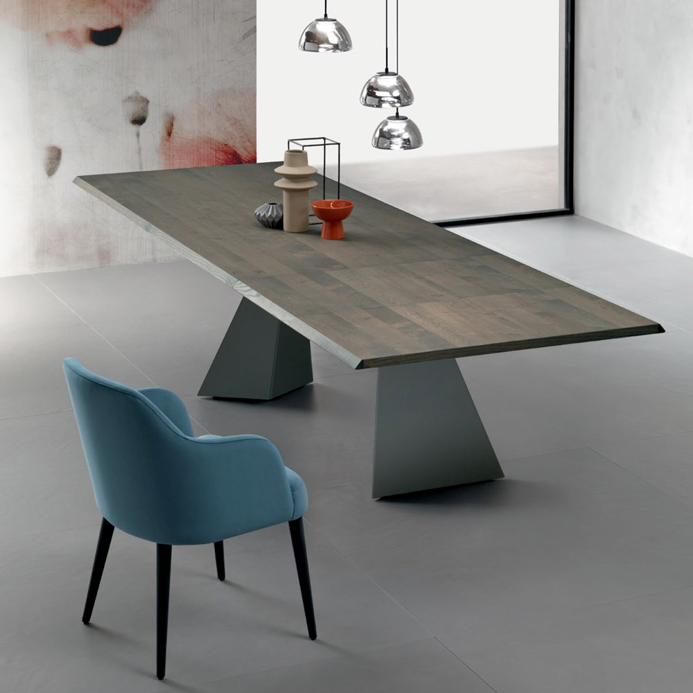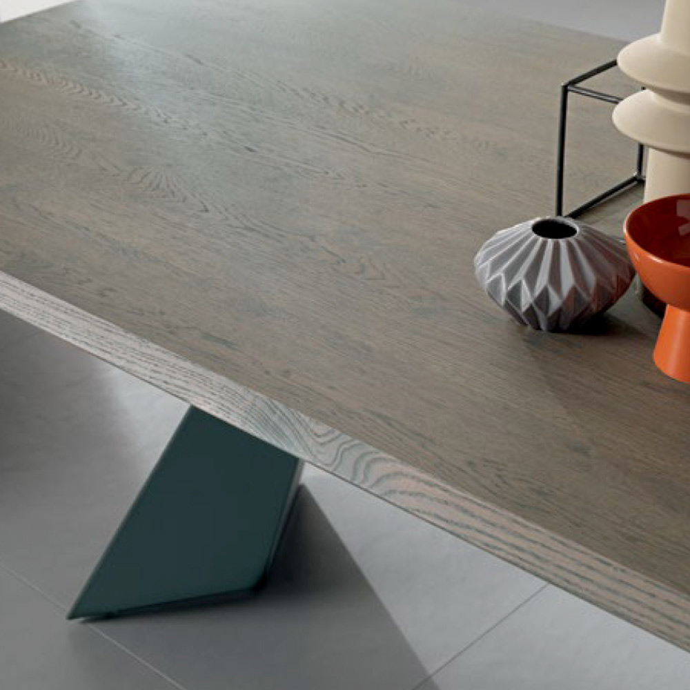 Deze tafel combineert architectonische creativiteit en eigentijdse verfijning en transformeert elke kamer in een stijlvolle ruimte . Het eikenhouten blad benadrukt de schoonheid van de natuurlijke nerf , terwijl de dunne, licht aflopende rand zorgt voor visuele lichtheid en een vleugje moderniteit.