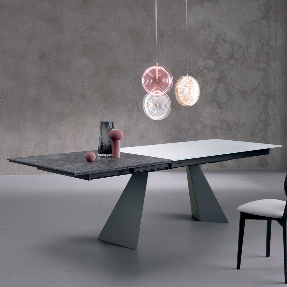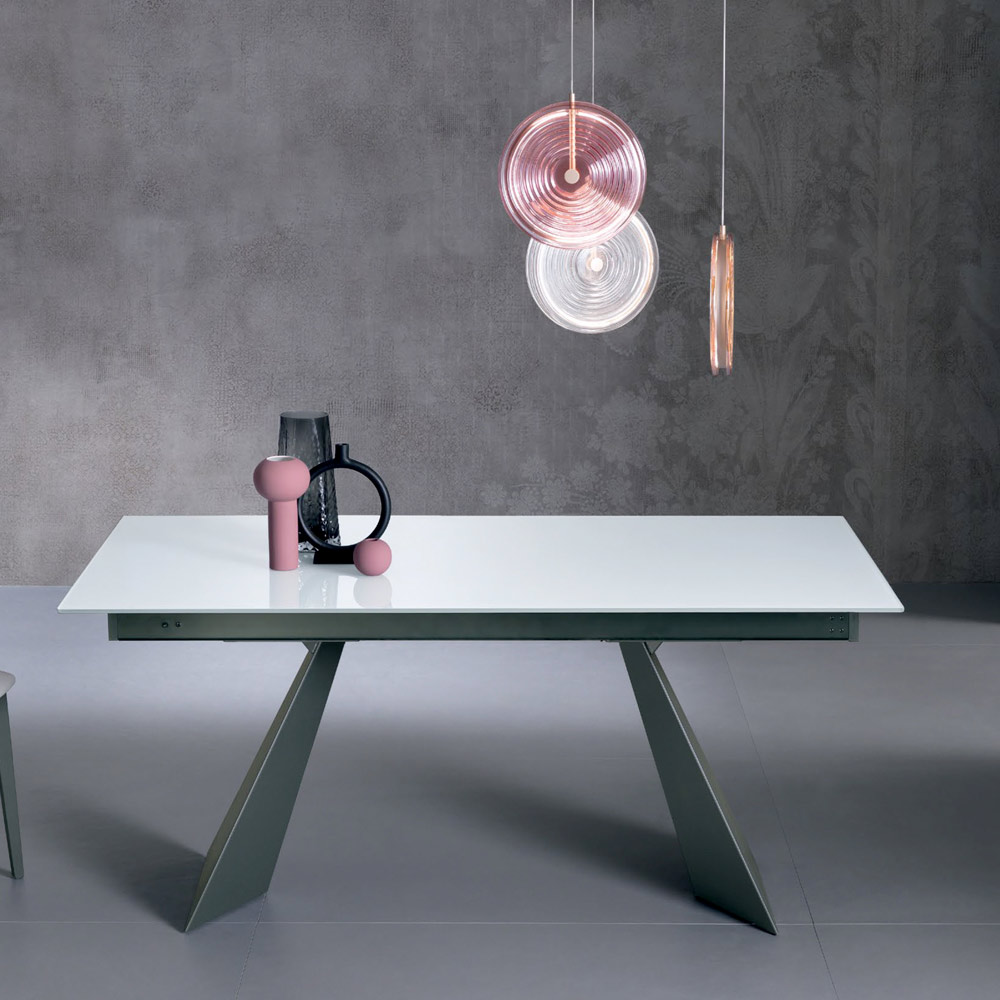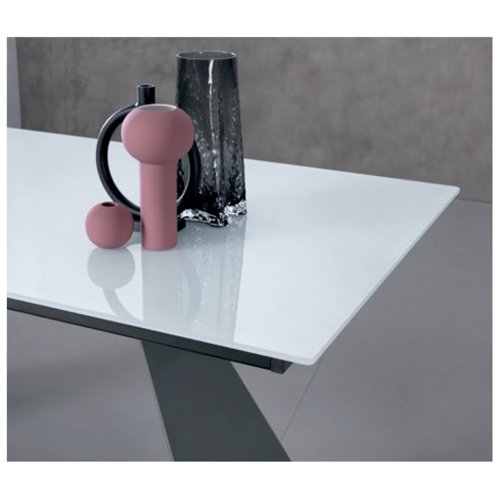 Uitschuifbare rechthoekige tafel met 10 mm dik glasblad.