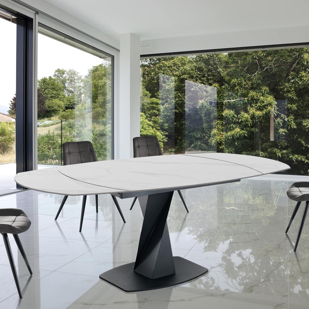 Uitschuifbare woonkamertafel in metaal en keramiek