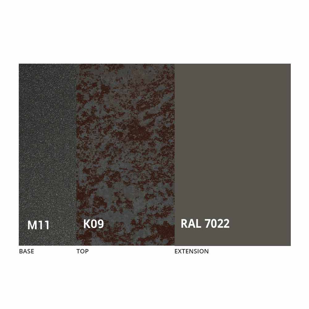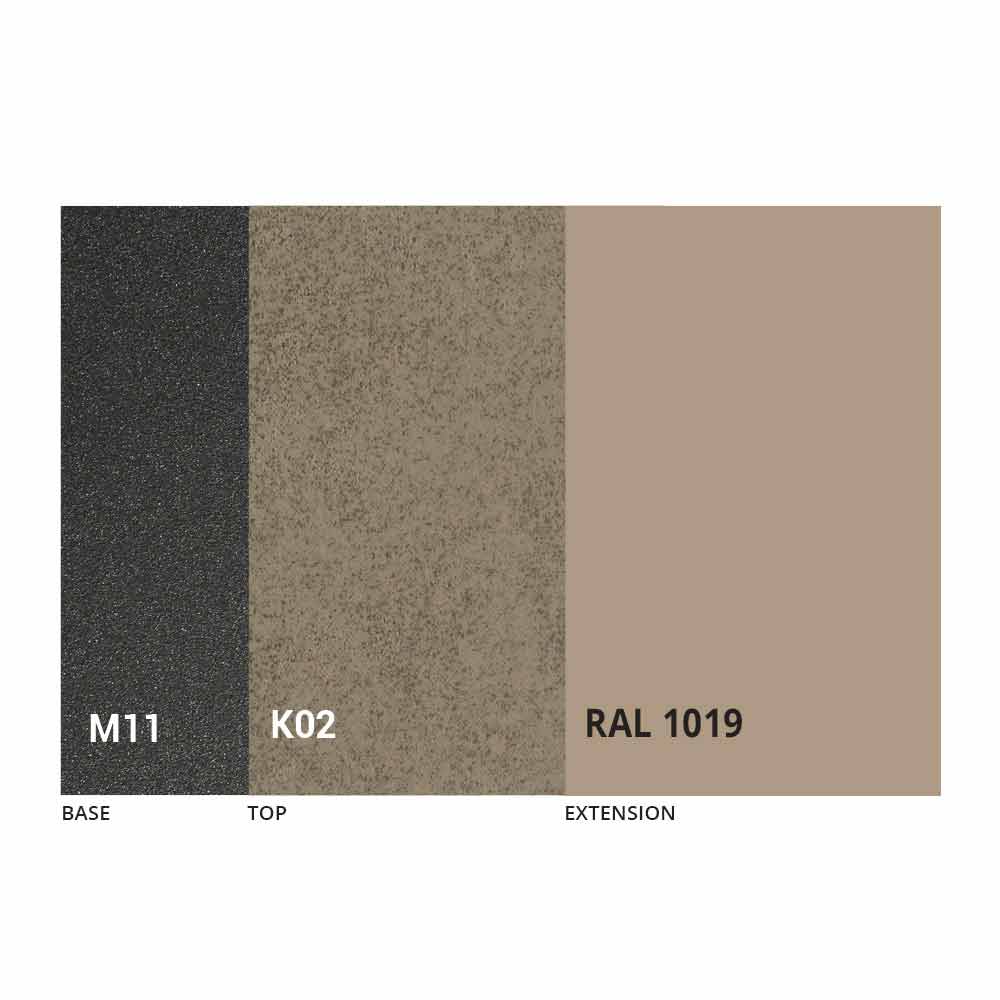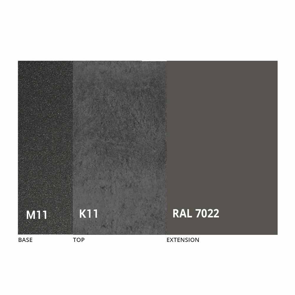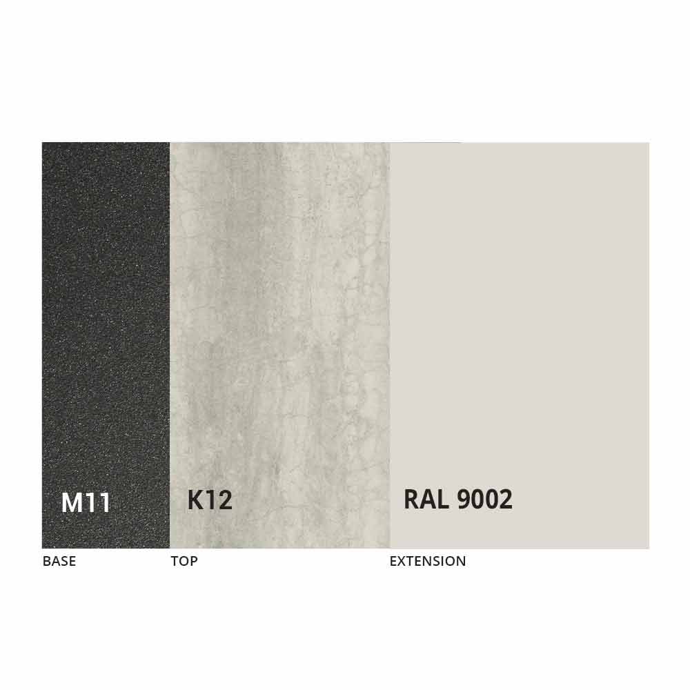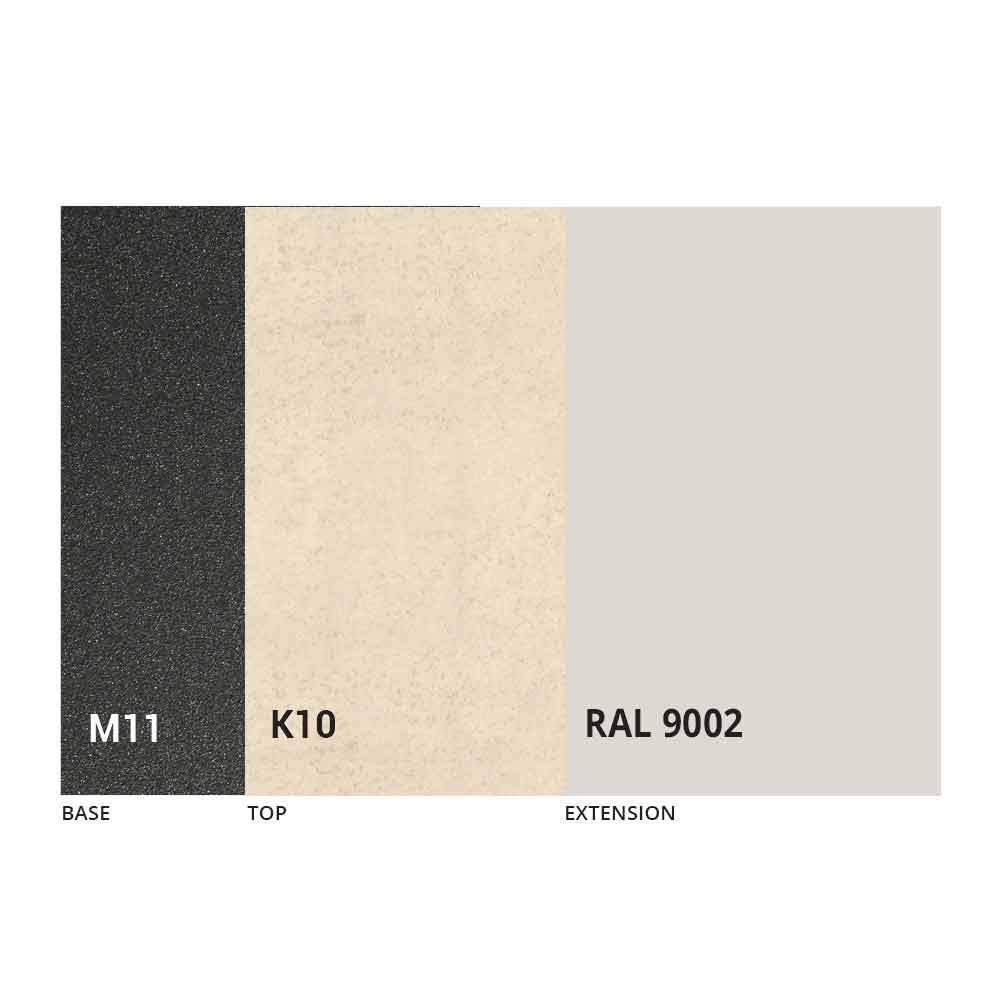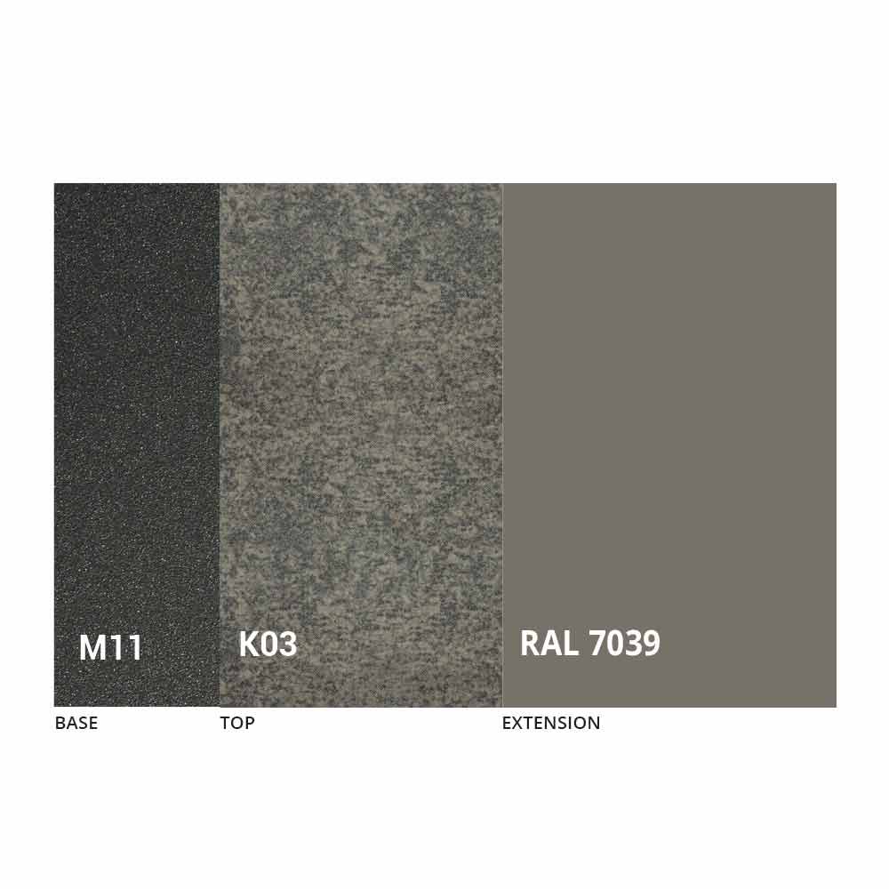 Het blad en de basis van de tafel kunnen worden aangepast met verschillende materialen en voorbeeldafwerkingen of RAL-lakken. Neem voor informatie contact met ons op via het daarvoor bestemde formulier "