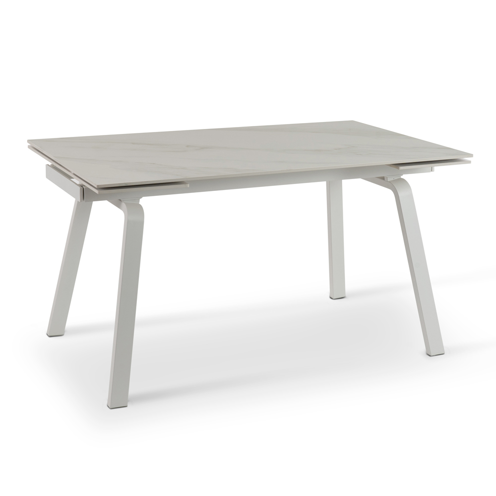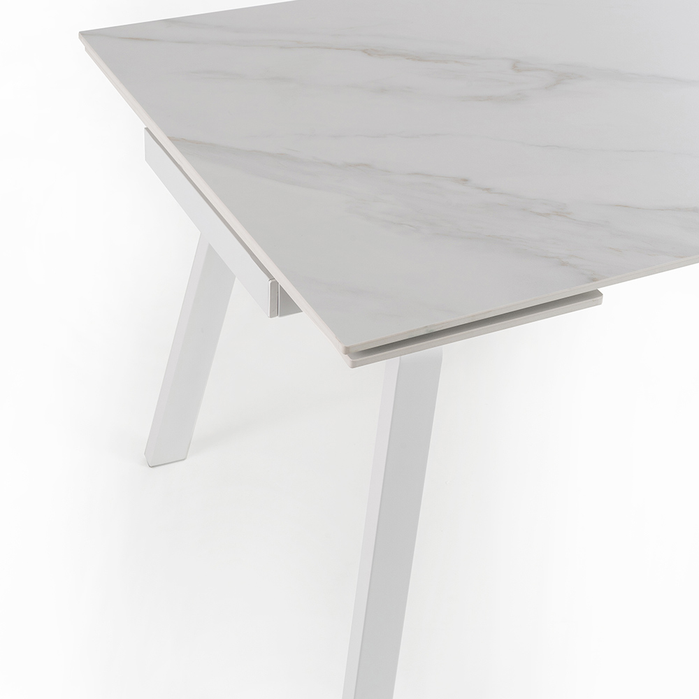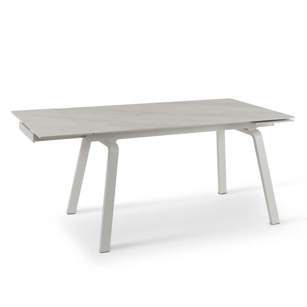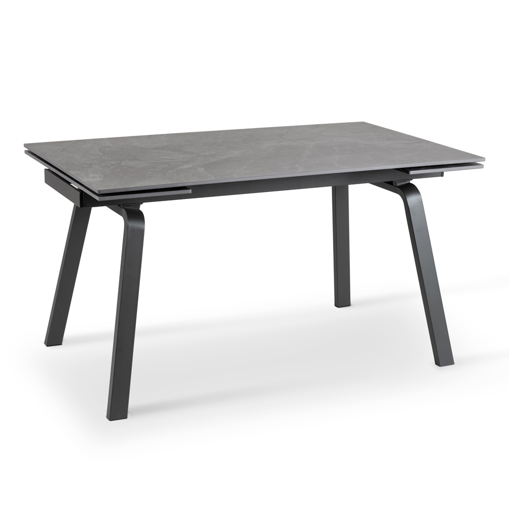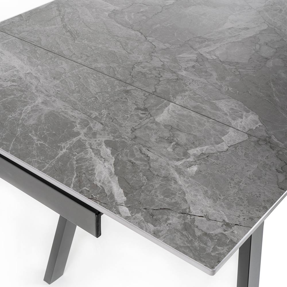Uitschuifbare eettafel van gesinterde steen met marmer en metaaleffect