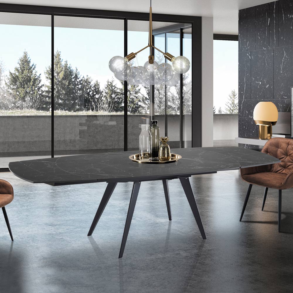 - keramisch blad met matzwarte marmeren afwerking, matzwarte voet