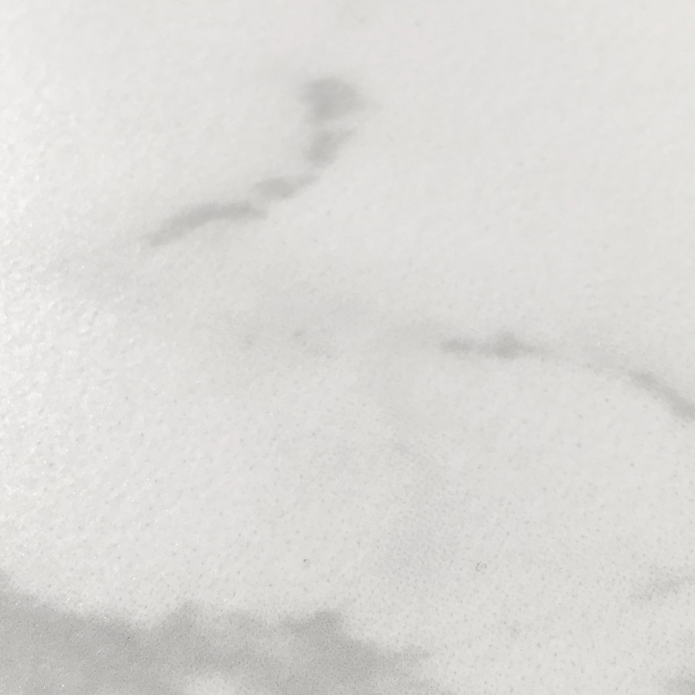 verlengstuk geplaatst onder het tafelblad van 6 mm dik keramiek met matte Wit Marmeren afwerking met "boek" opening . geheel