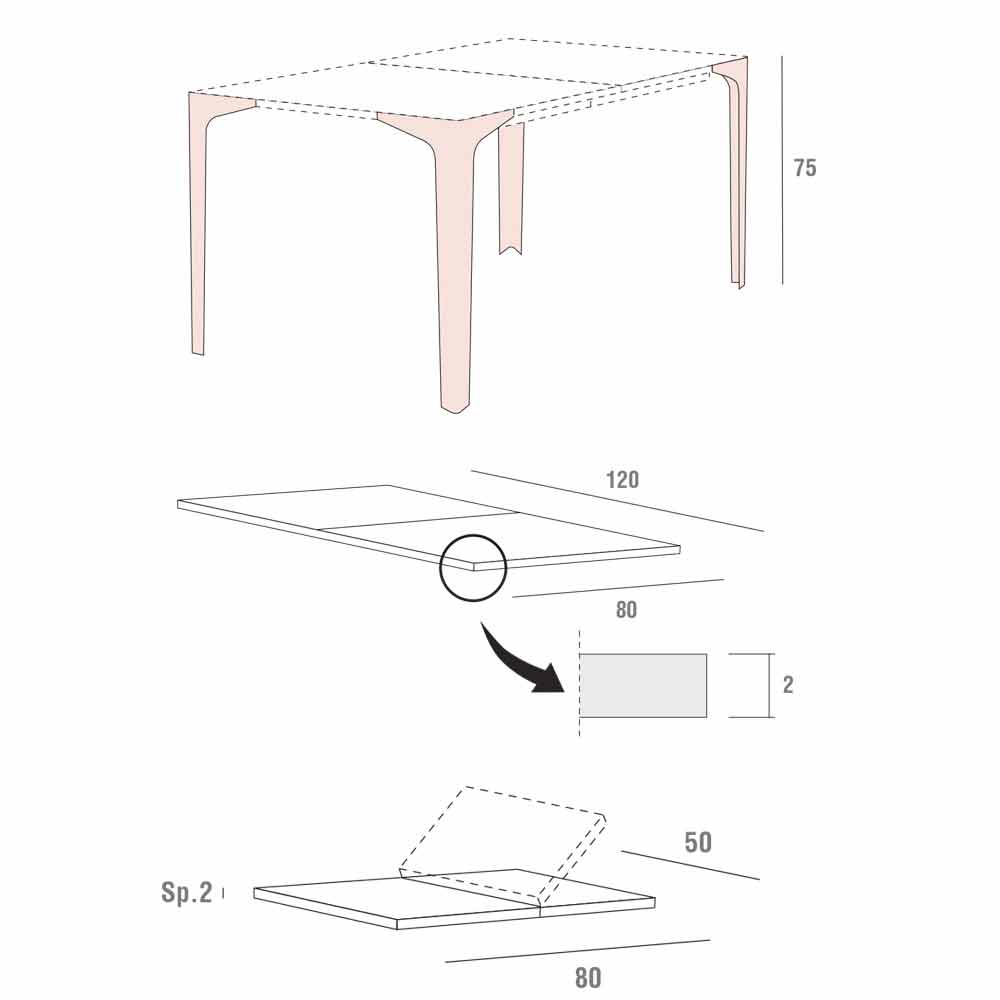 gekenmerkt door de mogelijkheid om het steunvlak te verlengen tot maximaal 222 cm dankzij een verlengstuk in dezelfde kleur als het blad waardoor u een groter aantal gasten kunt ontvangen voor heerlijke lunches of diners in gezelschap, waardoor de