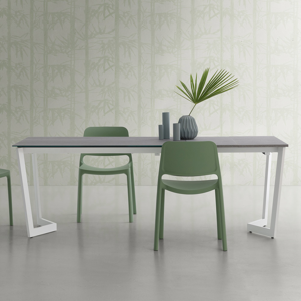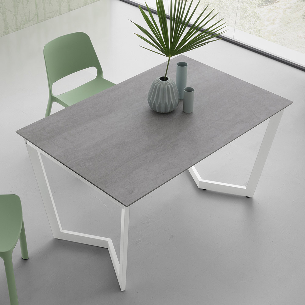 Uitschuifbare keukentafel in laminam keramiek met metalen onderstel Made in Italy.