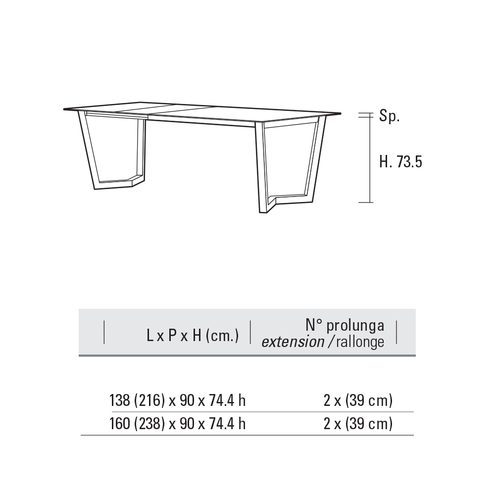 ze zijn gemaakt van hetzelfde materiaal als het blad en laten dit meubel uitschuiven tot een maximale lengte van 238 cm, waardoor