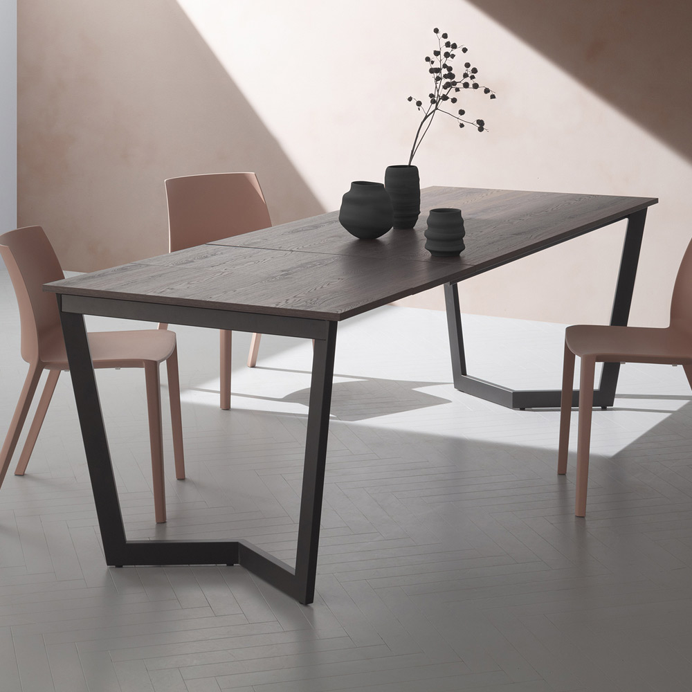 Uitschuifbare eettafel tot 238 cm in hpl en gelakt metaal Made in Italy.