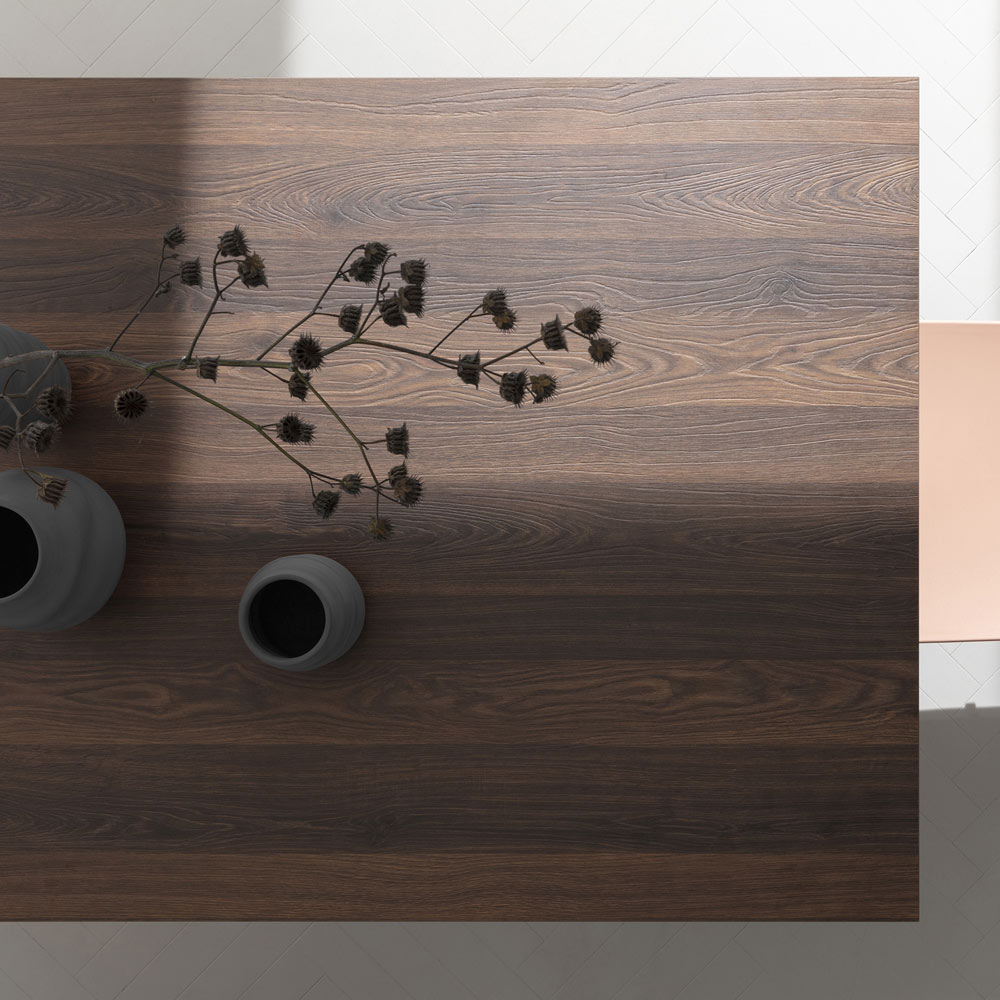 uitschuifbaar HPL-blad verkrijgbaar in verschillende afwerkingen en in twee verschillende maten. De esthetiek is volledig gericht op een