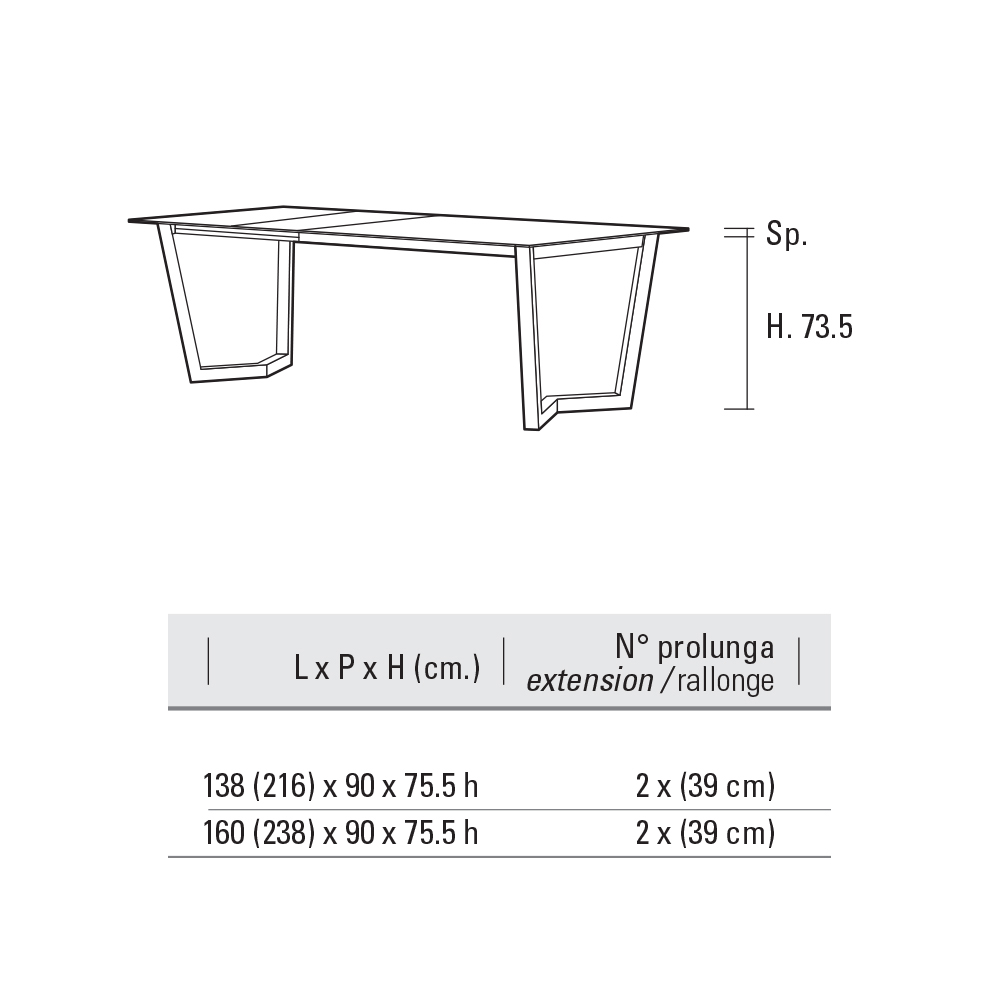 Ze zijn gemaakt van hetzelfde materiaal als het blad en zorgen ervoor dat dit meubelelement kan worden uitgetrokken tot een maximale lengte van 238 cm, waardoor een