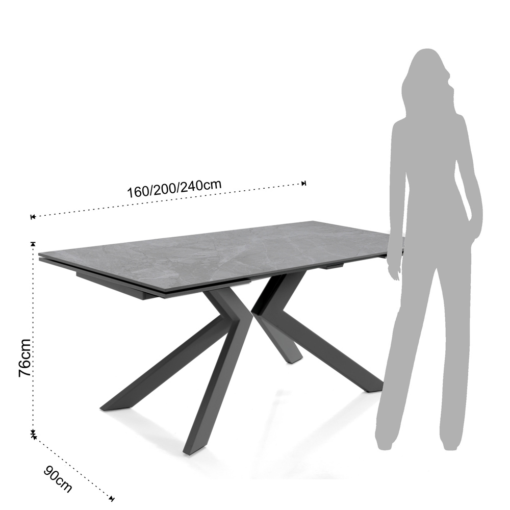 Uitschuifbare woonkamertafel in keramiek en metaal