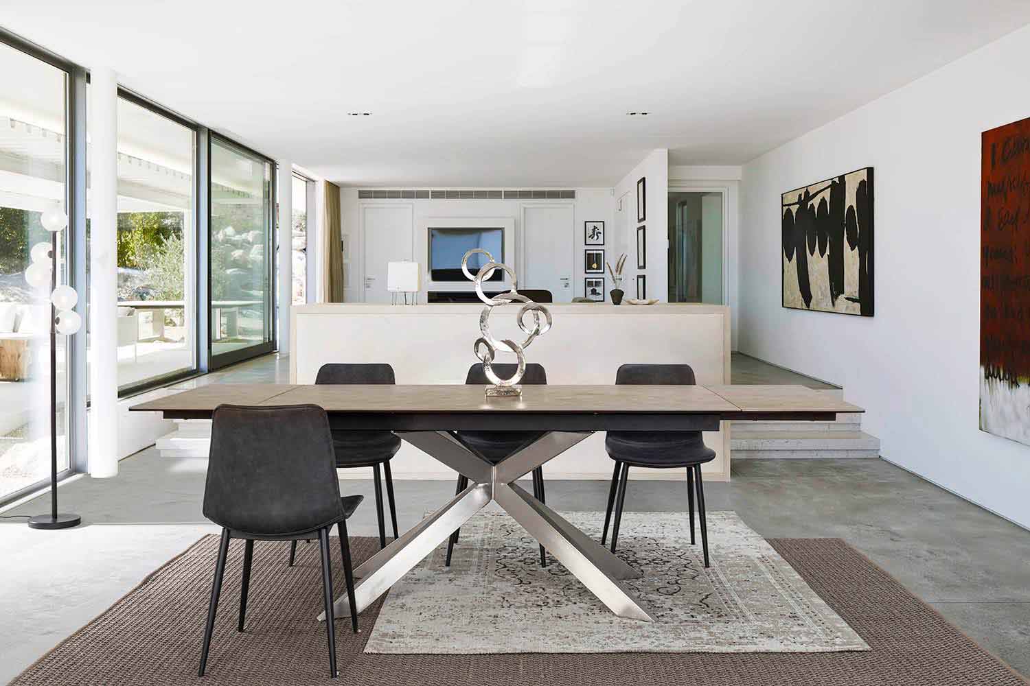 Moderne eettafel met keramisch blad uitschuifbaar tot 240 cm.