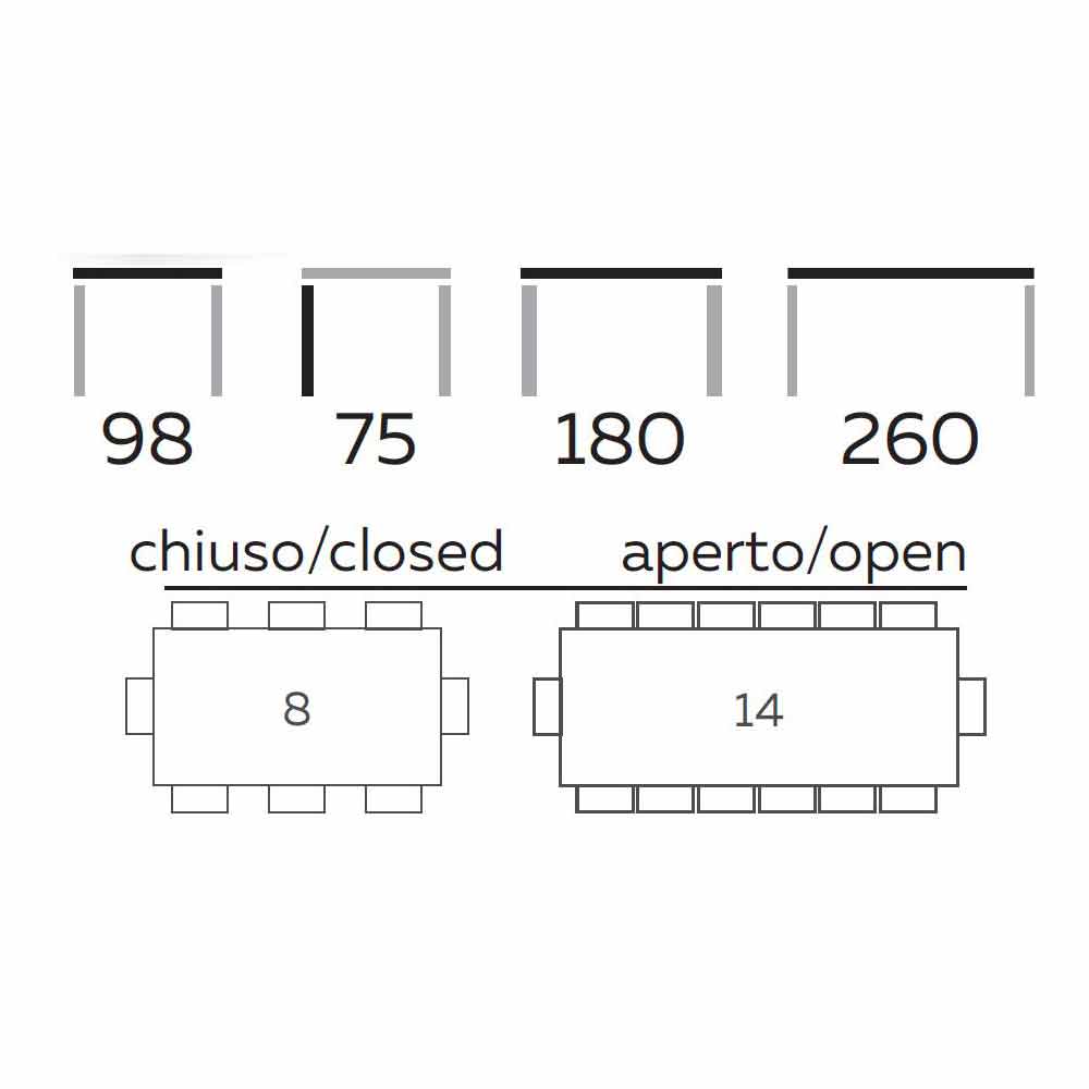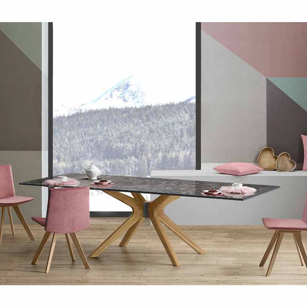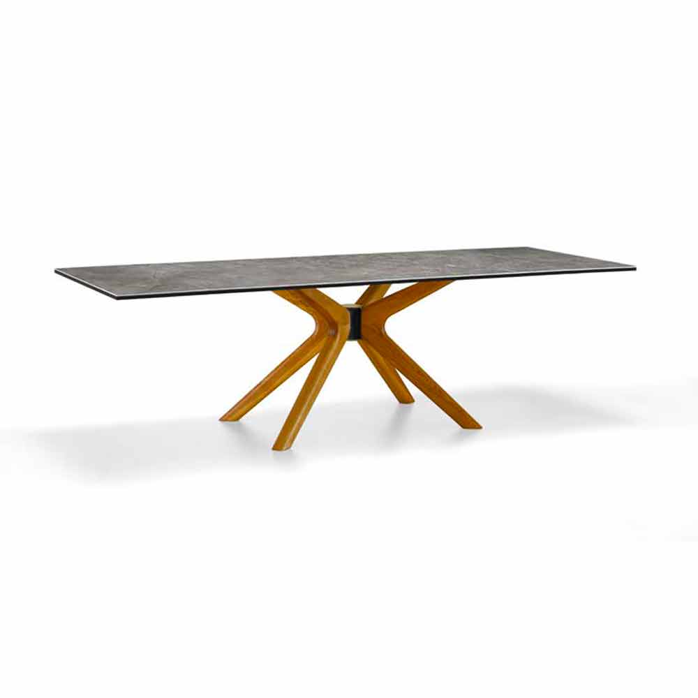 Moderne eettafel uitschuifbaar tot 260 cm met steengoed blad, hoogwaardig Made in Italy item.