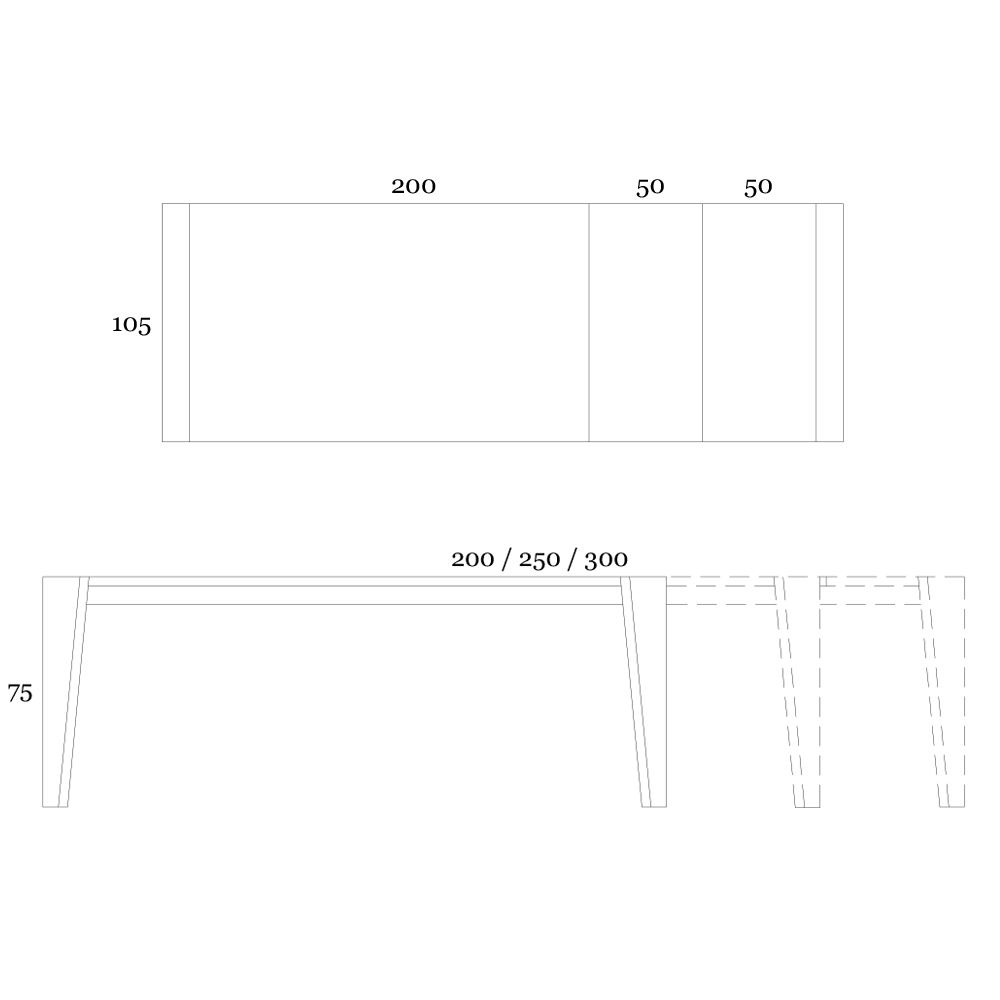 - lengte: 200/250/300 cm x diepte: 105 cm x hoogte: 75 cm - 2 verlengstukken