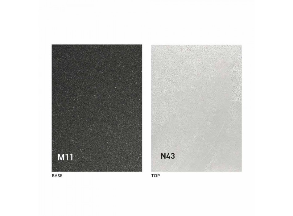 Het blad en de basis van de tafel kunnen worden aangepast met verschillende materialen en voorbeeldafwerkingen of RAL-lakken. Neem voor informatie contact met ons op via het daarvoor bestemde formulier "