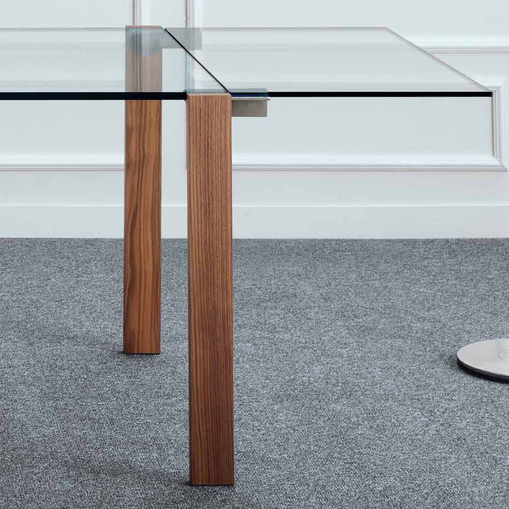 - blad en verlengstukken in transparant glas, poten in canaletto walnoot.
