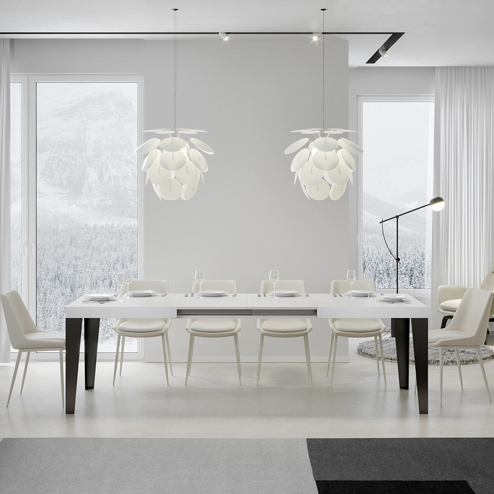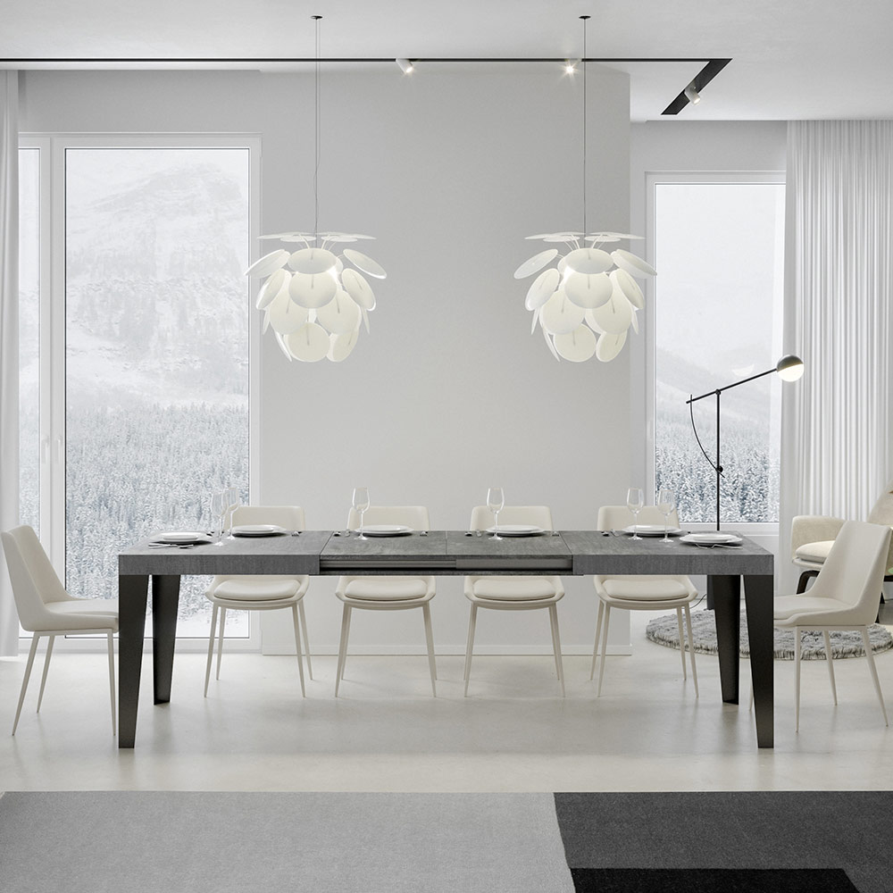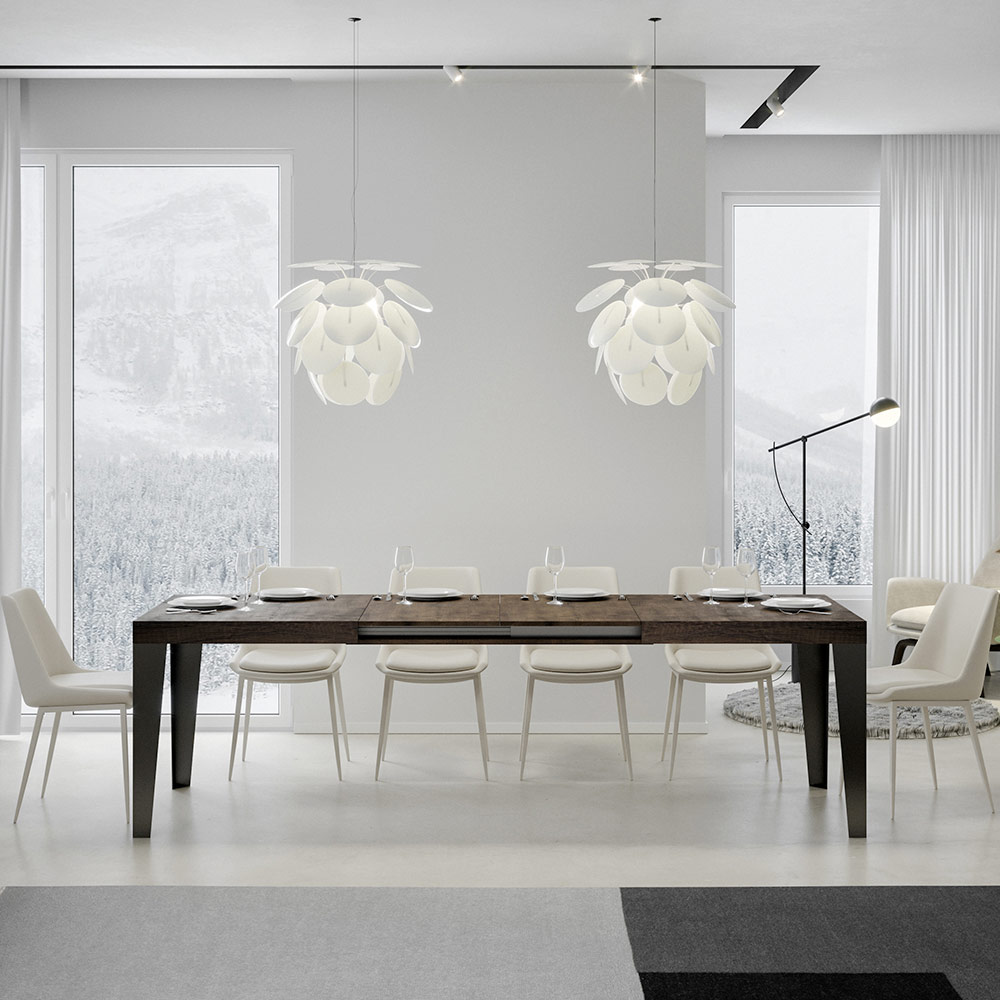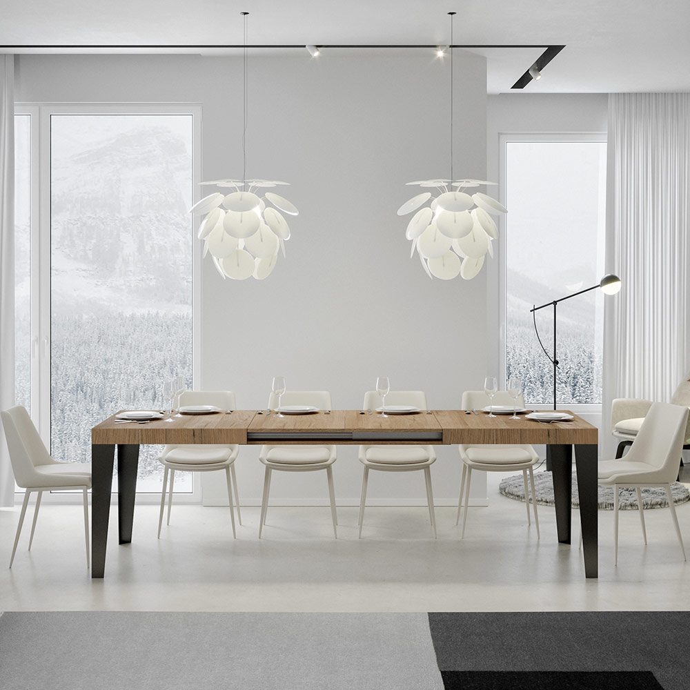 Uitschuifbare tafel gemaakt van microdeeltjes van hout en ijzer gemaakt in Italië