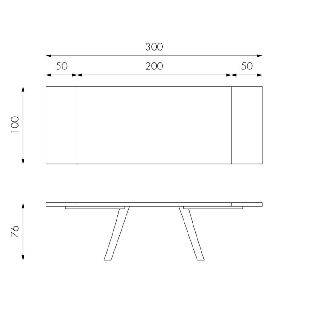 - Lengte: 200/300 cm x Diepte: 100 cm x Hoogte: 76 cm