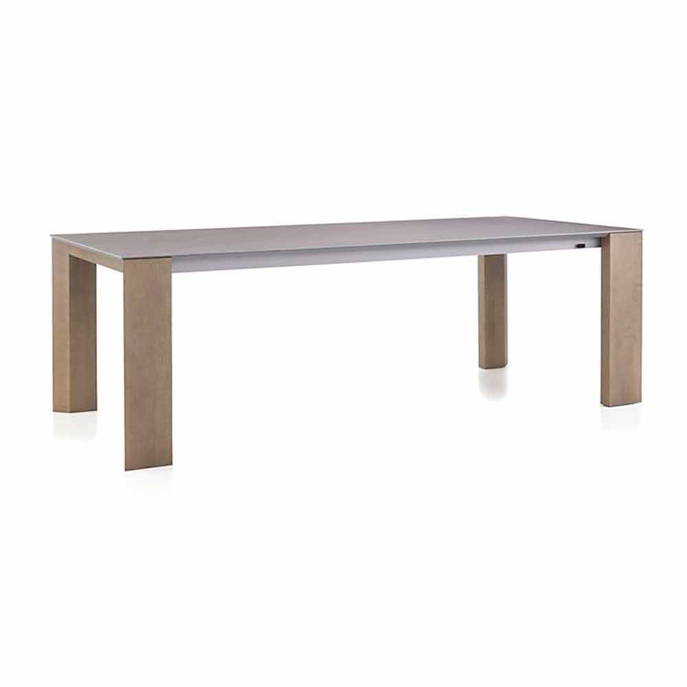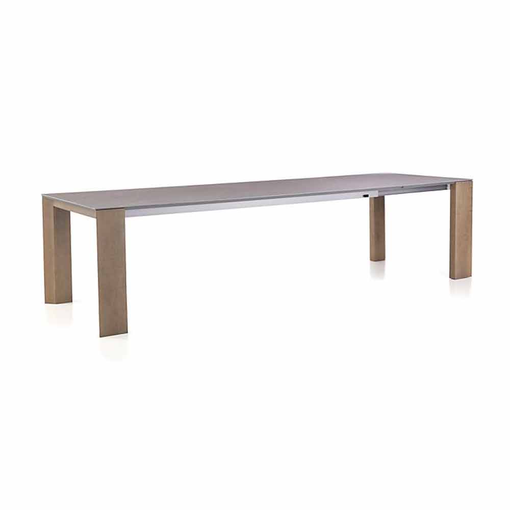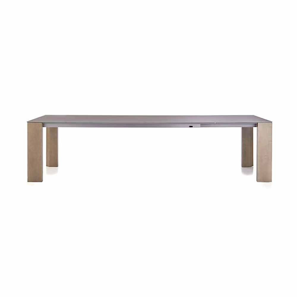 Het idee van dit type verzameling tafels, met echt belangrijke afmetingen tot 300 cm lang, is om een gemakkelijk bereikbare uitbreidingsservice te bieden. Elegantie is ook aanwezig in een langgerekte positie. Deze eenvoud in de uitbreidingsfunctie wordt mogelijk gemaakt door het gebruik van een aluminium frame met geïntegreerde geleiders, waarbij nobele traditionele materialen zoals hout en keramiek worden gecombineerd tot een eigentijds ontwerp dat lang meegaat.