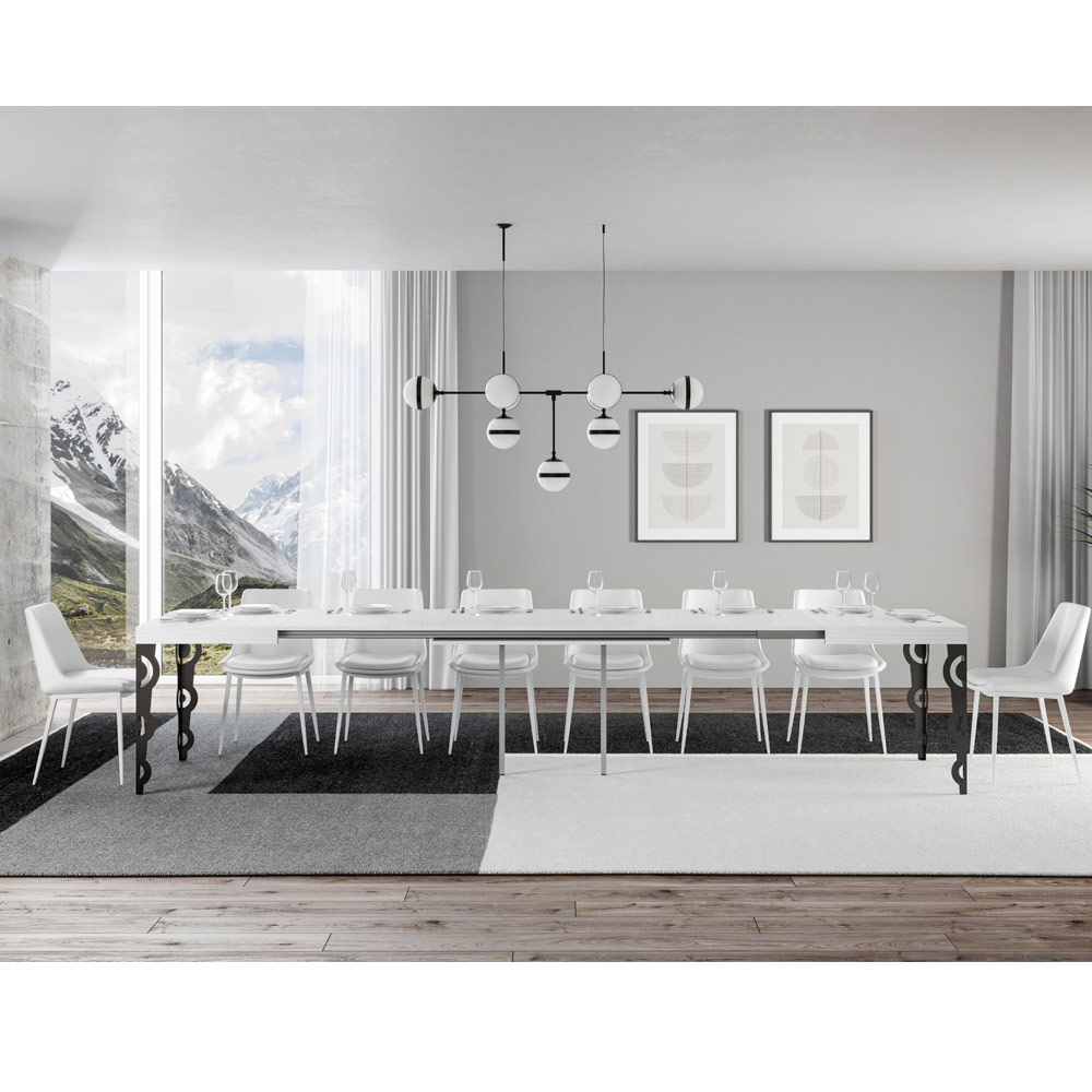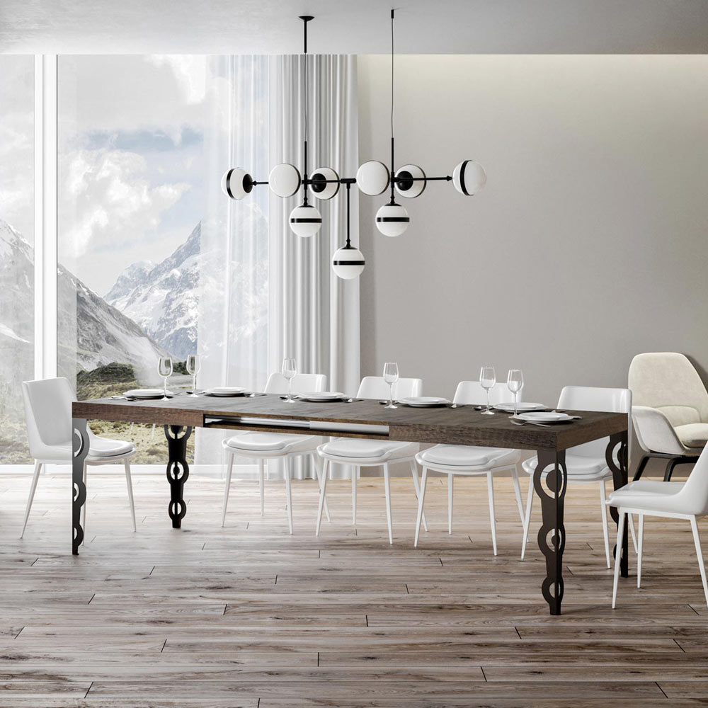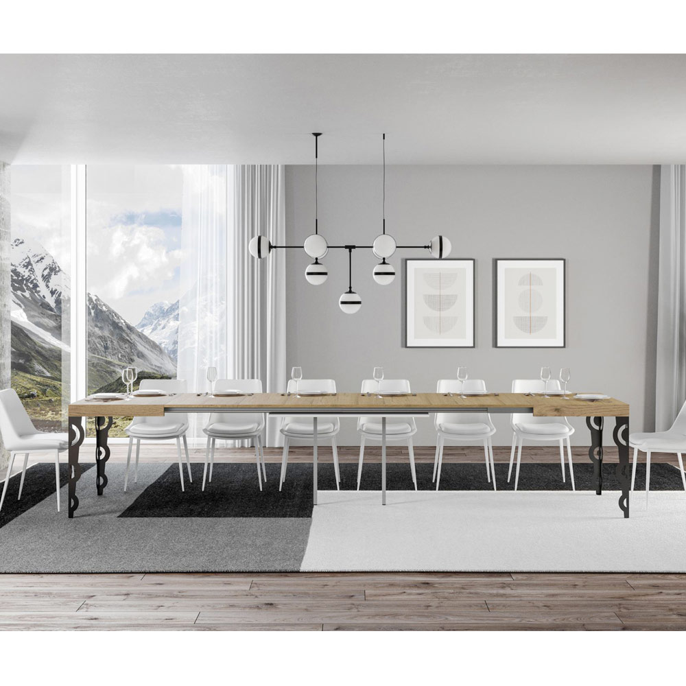 De keuze voor deze uittrekbare tafel vertegenwoordigt een toewijding aan meubilair dat spreekt, dat een verhaal vertelt van stijl, aandacht voor detail en een liefde voor tijdloze schoonheid. È de ideale keuze voor wie niet tevreden is met functionaliteit, maar streeft naar een alledaags leven omringd door kunst en design.