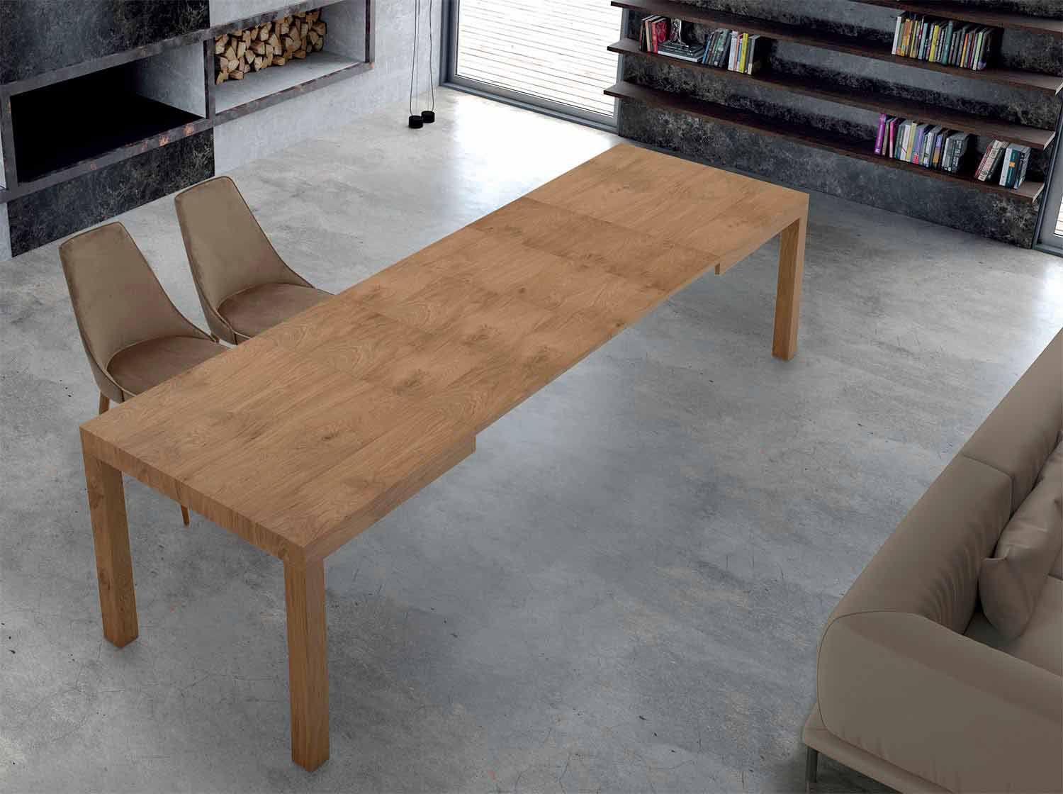 Uitschuifbare eettafel tot 470 cm, handgemaakt in Italië in geknoopt eikenfineer.