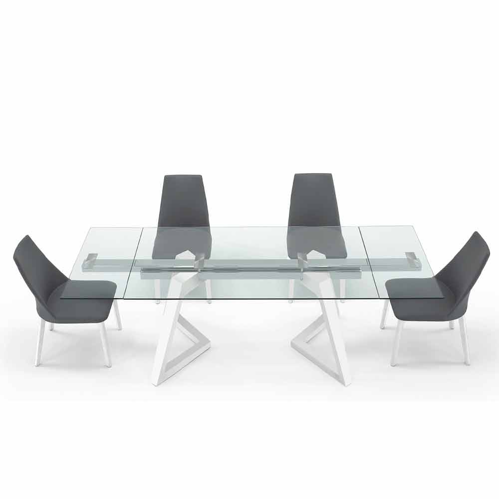 tafel is uitschuifbaar door zijwaarts te schuiven door de extractie van 2 verlengstukken van elk 40 cm die zich in het frame bevinden.
