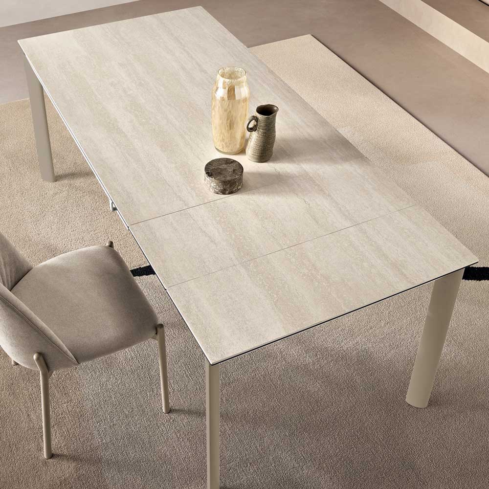 Uitgerust met twee verlengstukken van 30 cm , kunt u het oppervlak naar behoefte vergroten, perfect voor het serveren van lunches en diners. Verkrijgbaar in twee maten en diverse combinaties van blad- en onderstelafwerkingen, past het gemakkelijk in moderne interieurs.