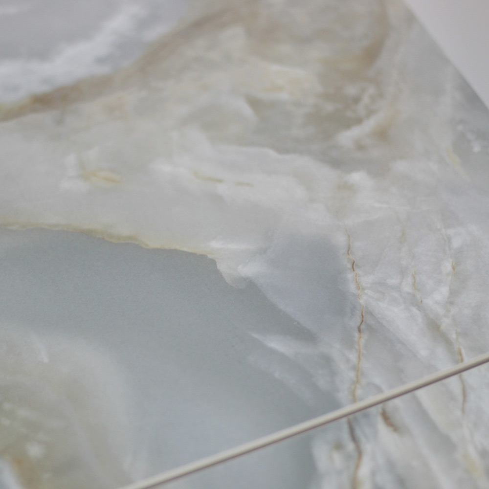 champagne voet, glanzend geaderd goud calacatta blad (dikte 10 mm glas + 5 mm keramiek)