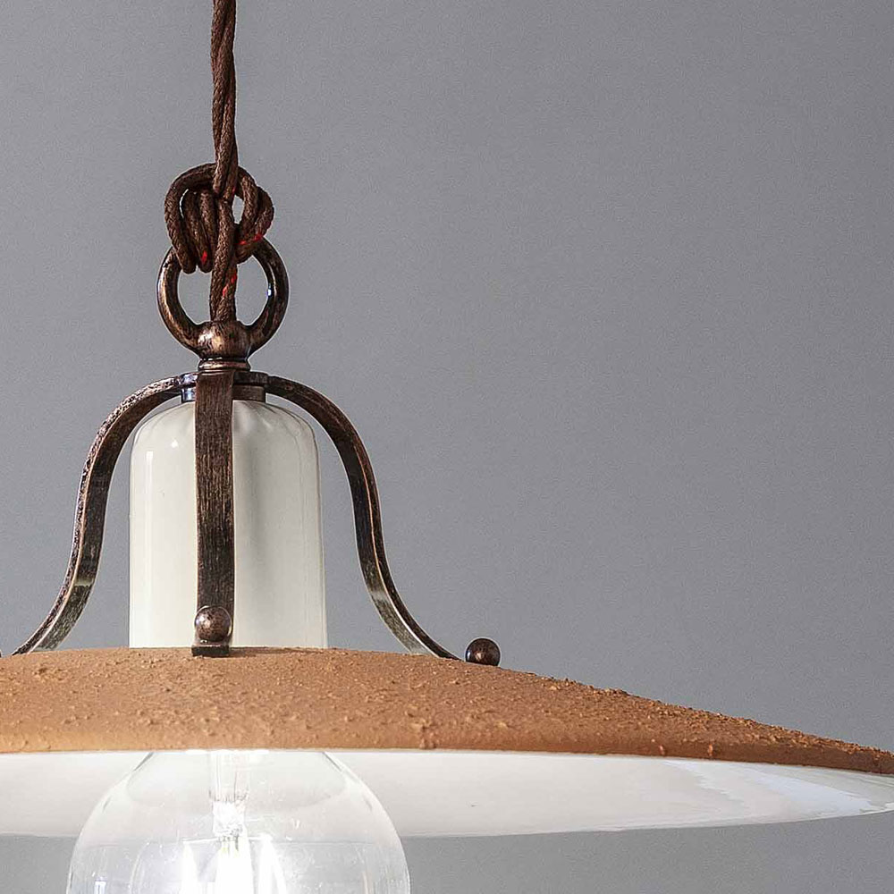 Hanglamp op en neer in ijzer en handgemaakt ruw keramiek, 2 maten made in Italy door Ferroluce.