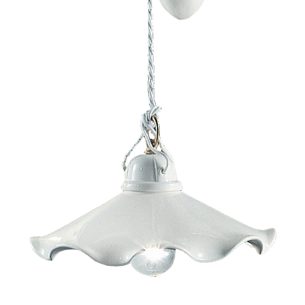 Vintage hanglamp in ijzer en gegolfd glanzend keramiek gemaakt in Italië door Ferroluce.