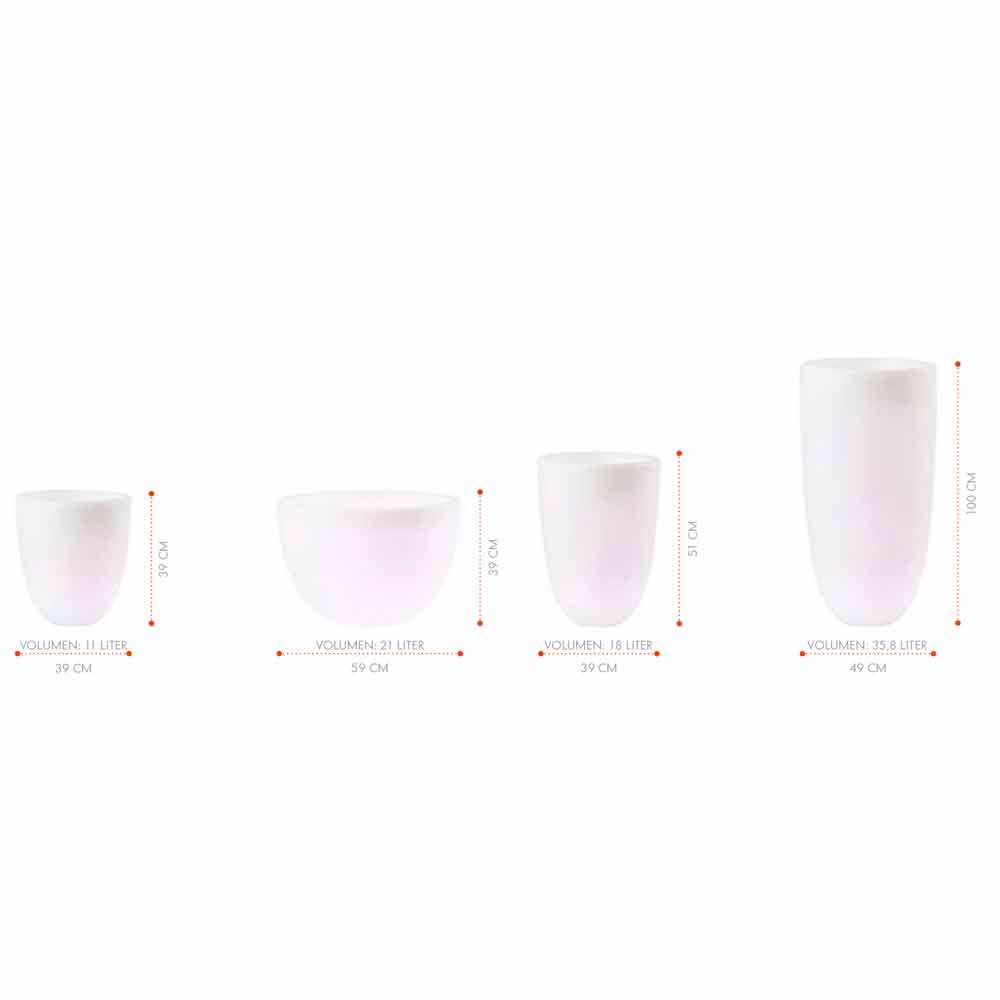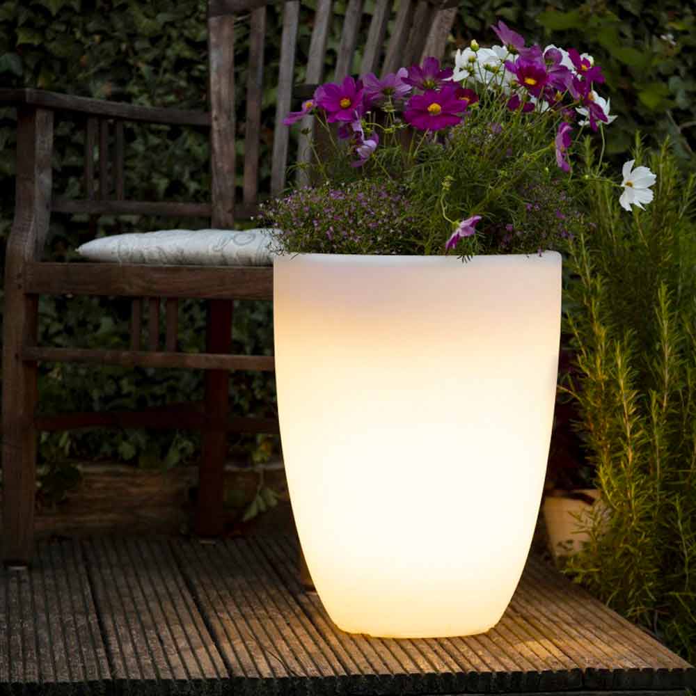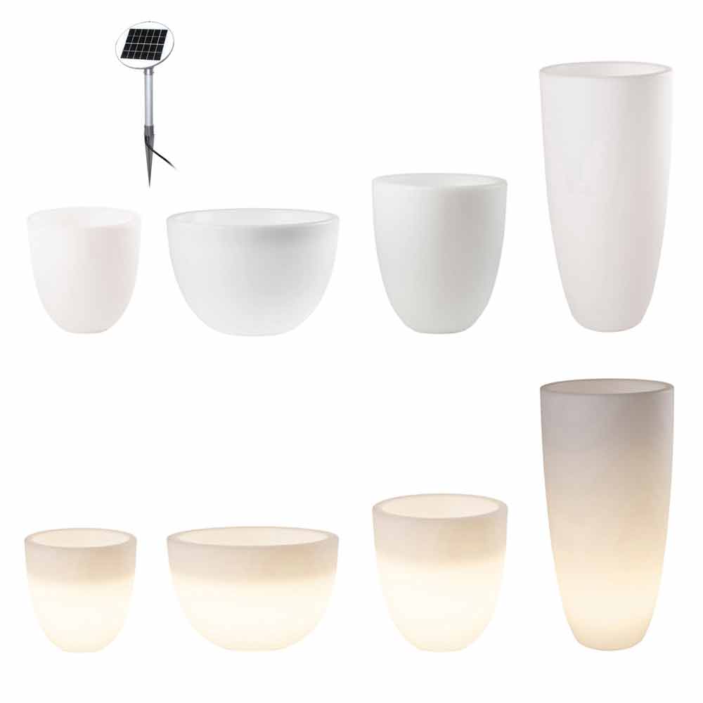 Lichtgevende vaas van modern en veelzijdig design voor binnen of buiten met led of solar in verschillende maten.