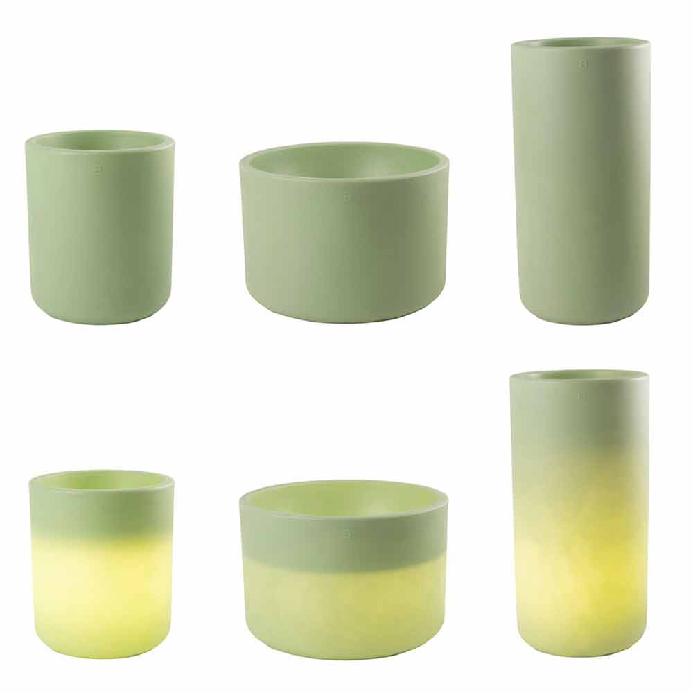 lichtgevende vaas, verkrijgbaar in verschillende maten en kleuren, draagt bij aan een