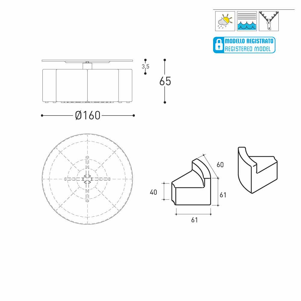 NB . De collectie ondersteunt zonlicht en regen. Wij adviseren regelmatig onderhoud en speciale aandacht voor de bescherming van voorwerpen in het geval van ongunstige weersomstandigheden (ijs, hagel, temperatuurveranderingen, vochtigheid, aanhoudende, verzengende hitte of extreme kou). De duurzaamheid en integriteit van deze items zijn afhankelijk van de zorg waarmee ze worden onderhouden. Voor aluminium- en staalproducten (43, 304Ep, 316), is het, zelfs als het wordt beschermd door behandelingen en afwerkingen die geschikt zijn voor gebruik buitenshuis, van essentieel belang om te voorkomen dat water in het product zelf stagneert. In feite bevatten alle artikelen technische perforaties die nodig zijn voor het aanbrengen van beschermende behandelingen en afwerkingen. De introductie van water in die gaten en de stagnatie ervan kan roest aan de inwendige delen van de leidingen veroorzaken.