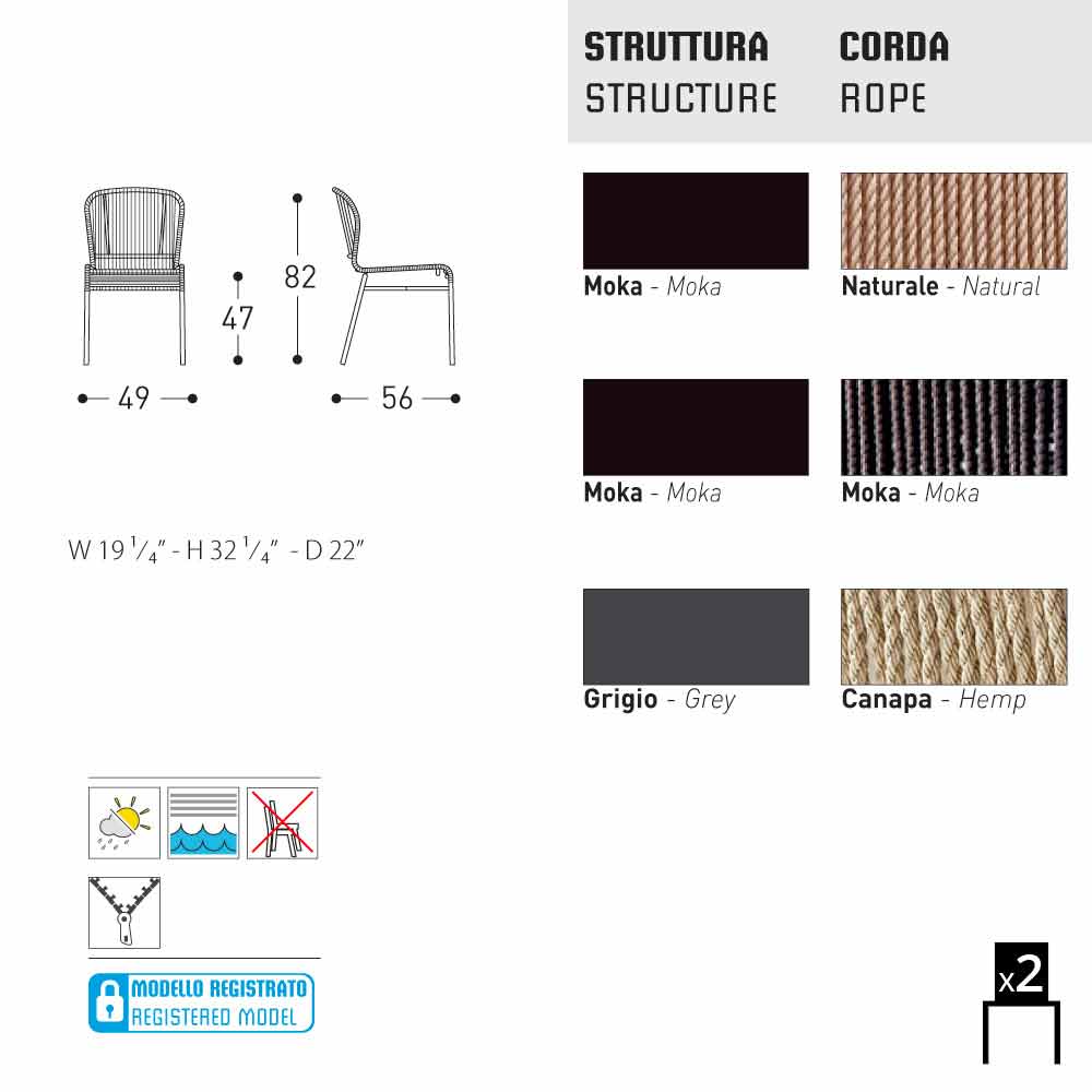 Mist zout en chloor: het product is geschikt voor het mariene milieu, in omstandigheden van zoute milieus en voor het zwembad in de aanwezigheid van chloor meubels. Maatregelen: zorgvuldig onderhoud en reiniging is van essentieel belang om de integriteit van de leden zo lang mogelijk te behouden.