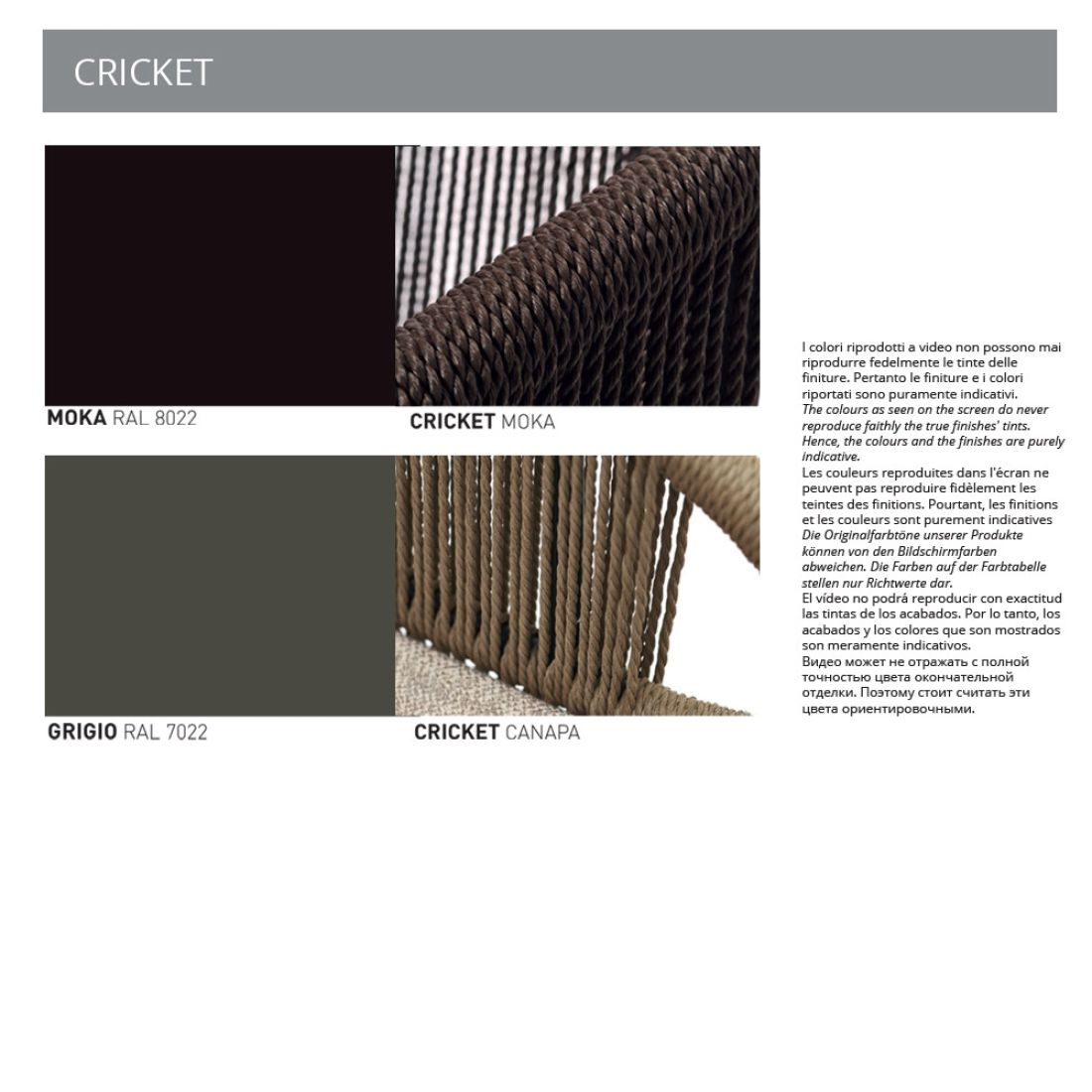 Bestaande uit 2 sessies in de hand gevlochten synthetische vezel met frame in gelakt aluminium. De stoel Cricket door Varaschin kan worden gebruikt als een tuin stoel in de woonkamer.