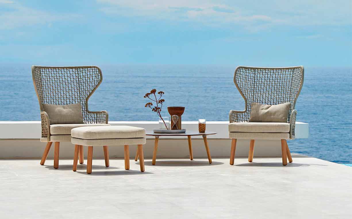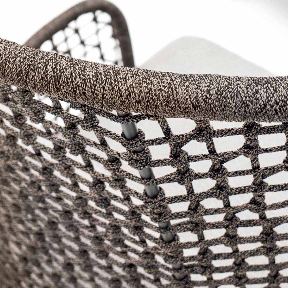 Emma is een fantastische tuinfauteuil met een structuur in handgeweven synthetische vezel met een aluminium frame met gepoedercoate keuze uit twee kleuren: beige en donkergrijs.