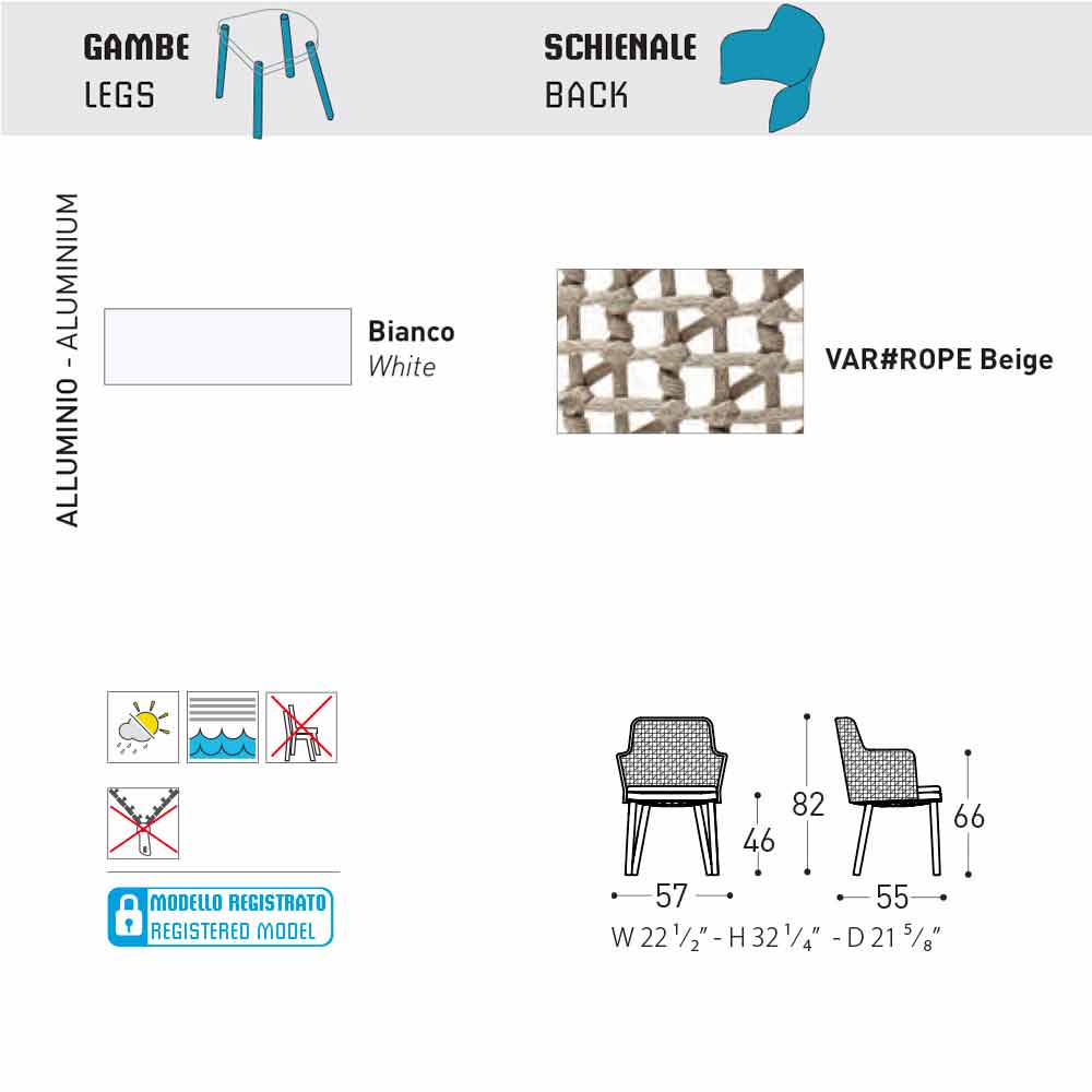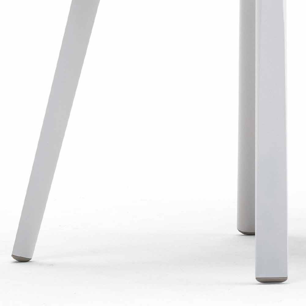 Het komt ook met poten in wit geschilderd aluminium en een stoel bekleed met stof met een polypropyleen zitconstructie.