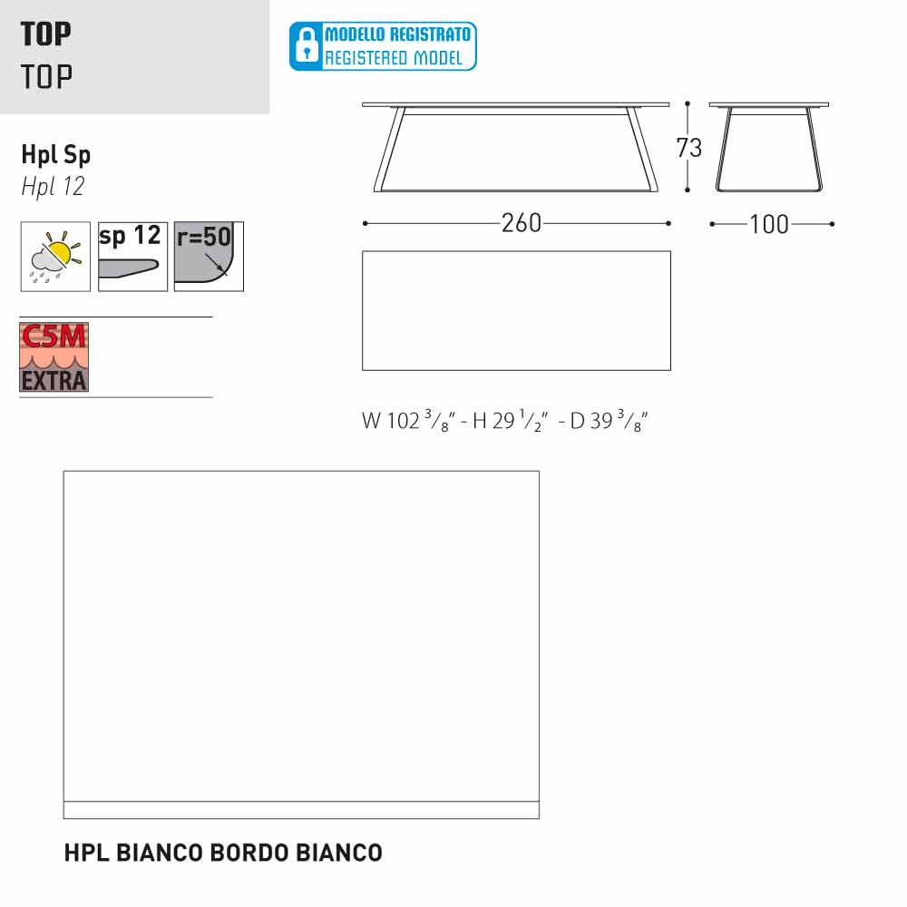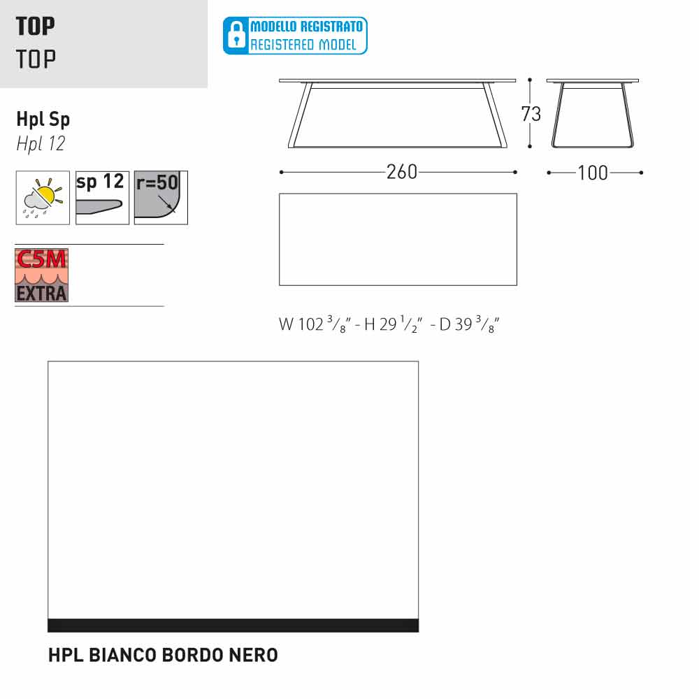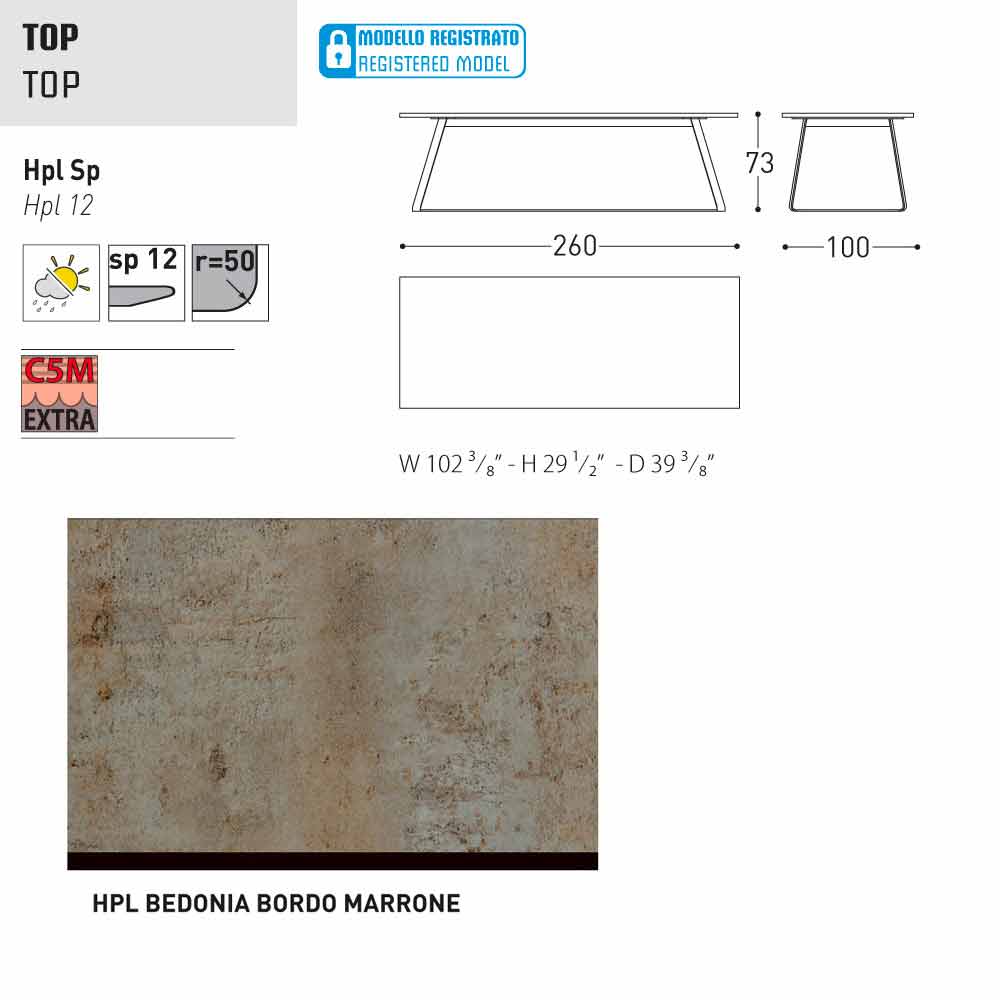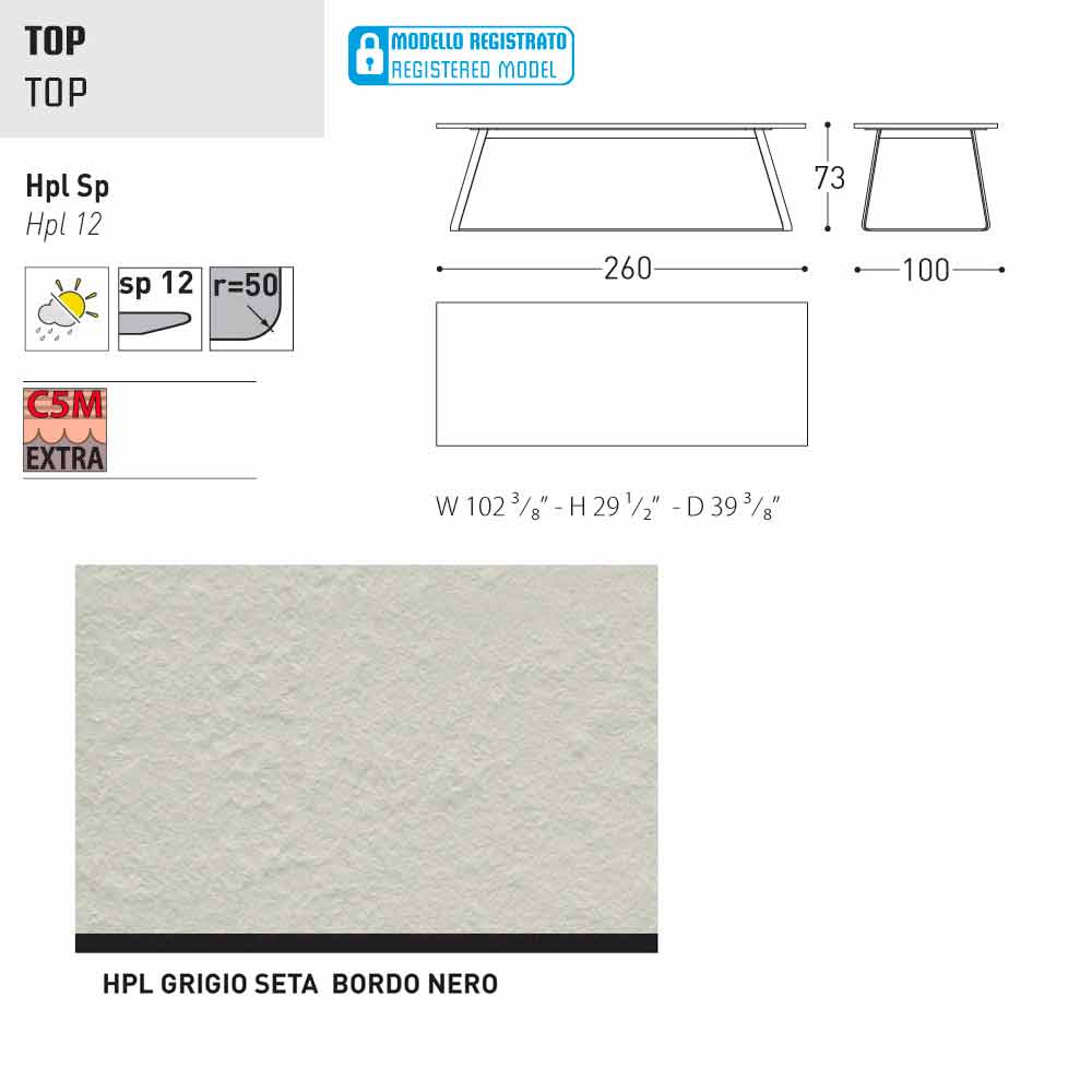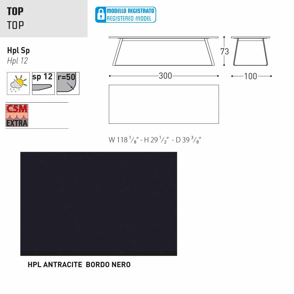 HPL Features: hoge druk kunststofplaten. Ze bestaan uit verschillende lagen papier (70%) geïmpregneerd met thermohardende harsen (30%) en verdicht door de gecombineerde werking van warmte (150 °) en hoge druk (groter dan 7 MPa) gedurende ongeveer 45-50 minuten. Het resultaat is een stabiele, niet-reactieve, niet-poreus en hoge dichtheid, met fysische en chemische kenmerken van hoge mechanische sterkte (beheerste temperatuur excursie +80, -40 graden, op beperkte minder dan 30 seconden bij extreme temperaturen), blootstelling aan het licht en blootstelling aan veranderingen in temperatuur, zelfs in het mariene milieu.