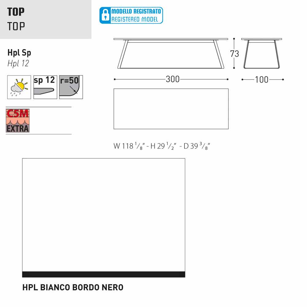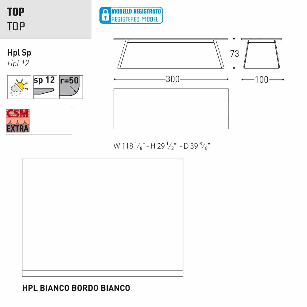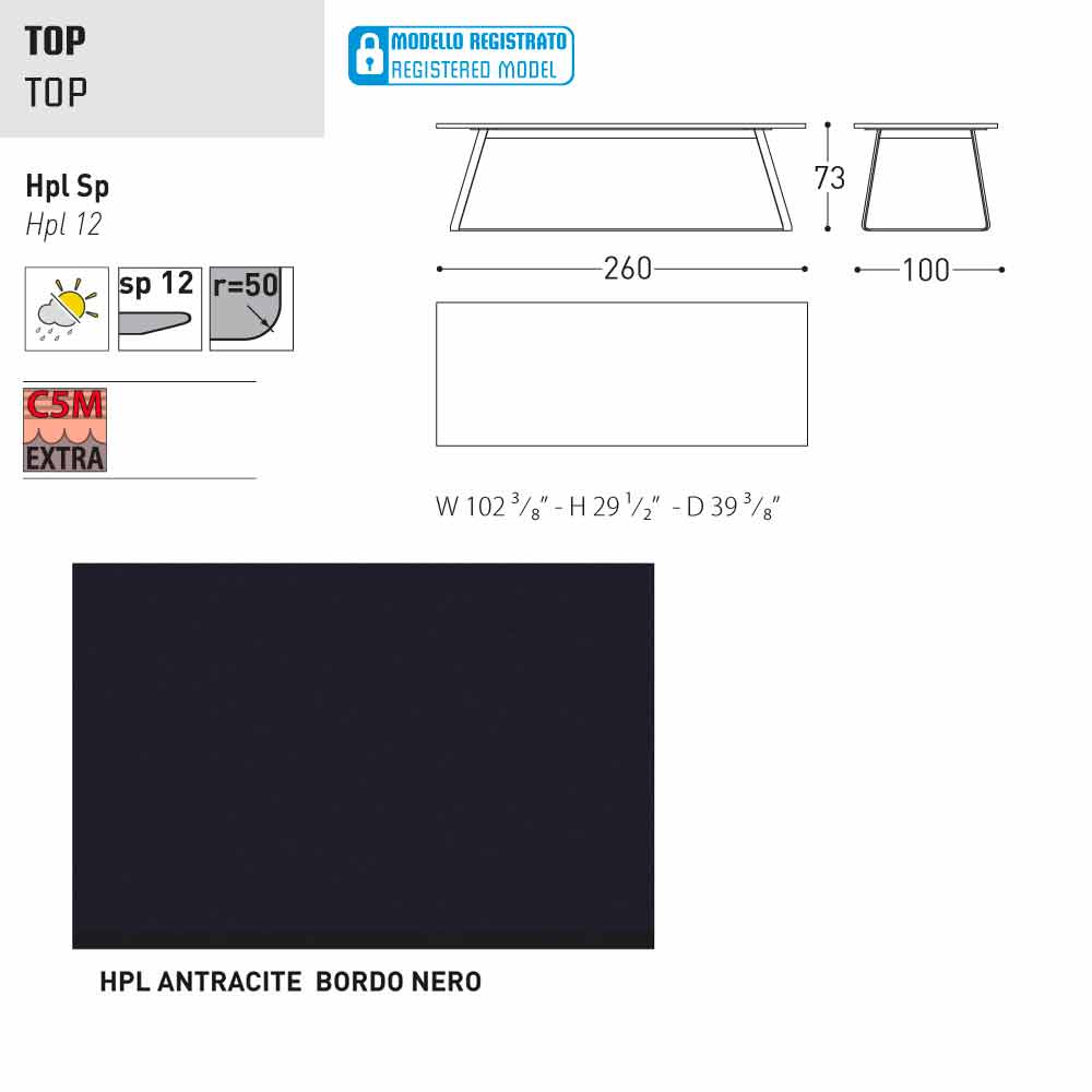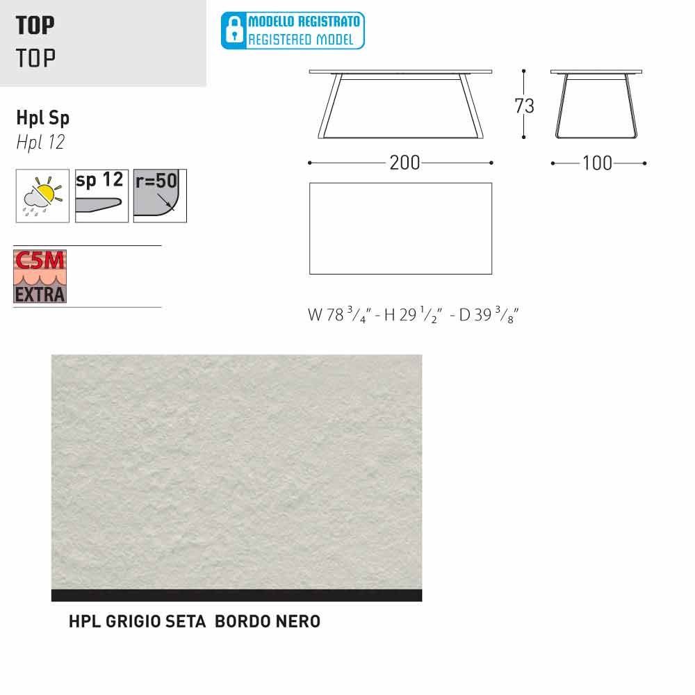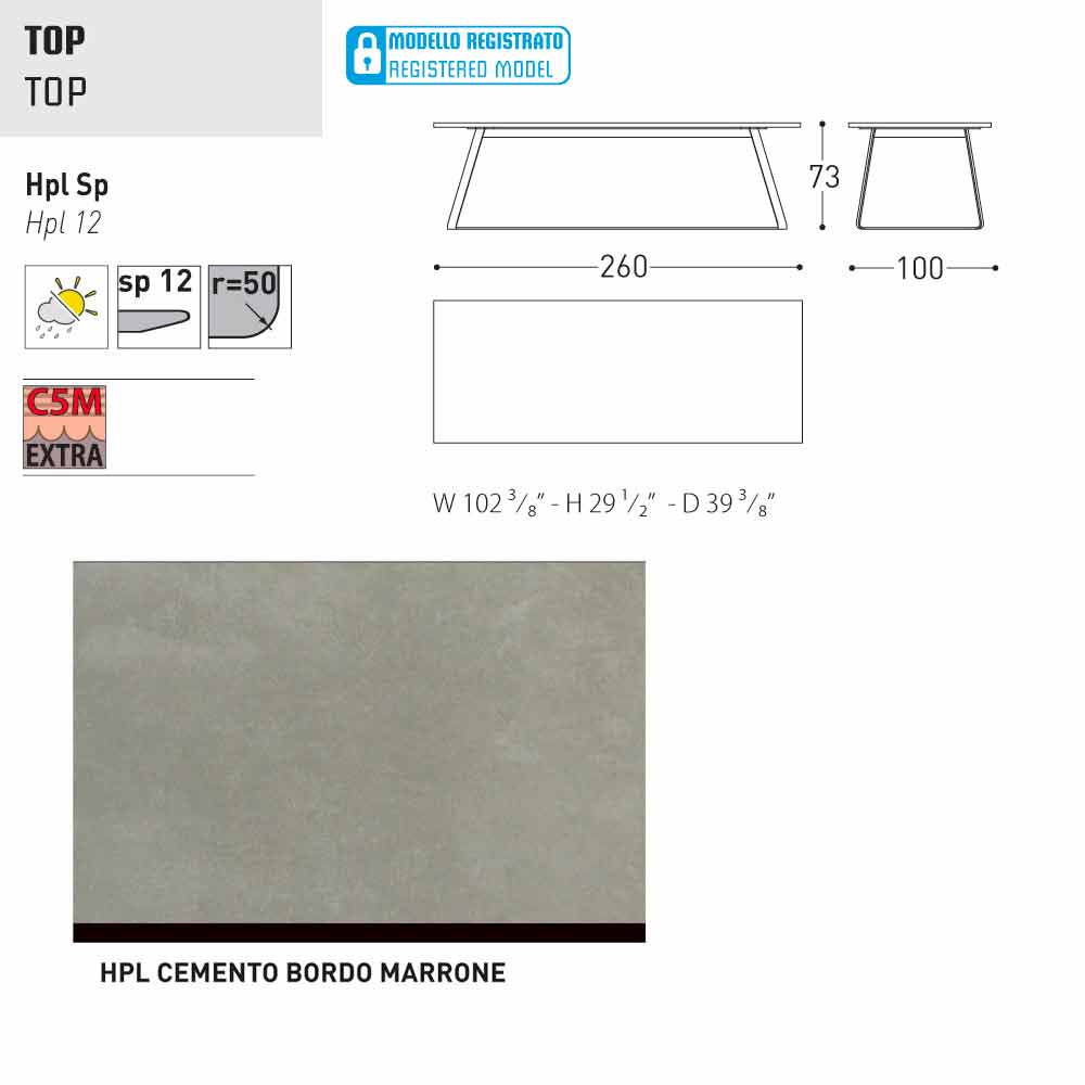 HPL Features: hoge druk kunststofplaten. Ze bestaan uit verschillende lagen papier (70%) geïmpregneerd met thermohardende harsen (30%) en verdicht door de gecombineerde werking van warmte (150 °) en hoge druk (groter dan 7 MPa) gedurende ongeveer 45-50 minuten. Het resultaat is een stabiele, niet-reactieve, niet-poreus en hoge dichtheid, met fysische en chemische kenmerken van hoge mechanische sterkte (beheerste temperatuur excursie +80, -40 graden, op beperkte minder dan 30 seconden bij extreme temperaturen), blootstelling aan het licht en blootstelling aan veranderingen in temperatuur, zelfs in het mariene milieu.