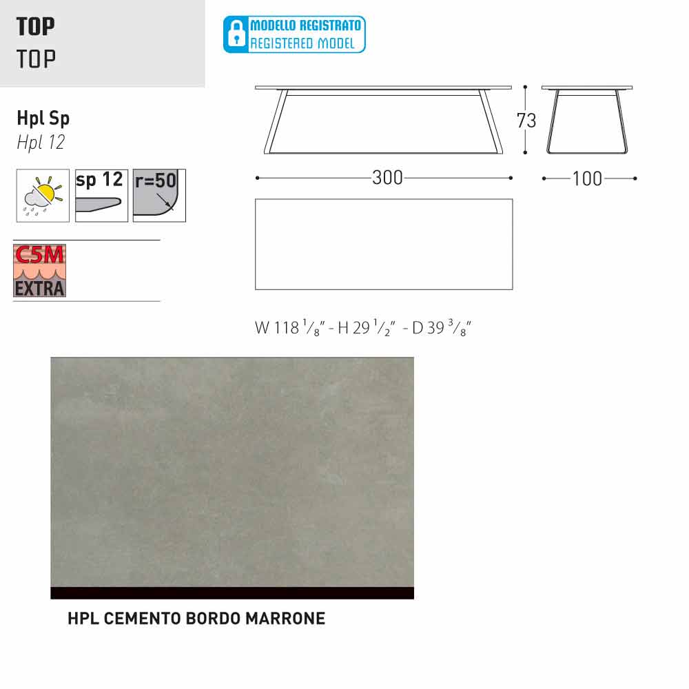 getrokken stalen basisplaat kataforese en poedercoating. HPL, dikte 12 mm. De tabel voor de externe Kolonaki is een geregistreerd model en wordt aangeboden in verschillende afwerkingen en maten. Met zijn veelzijdige ontwerp kan worden gebruikt op het terras of in de tuin als in de woonkamer.